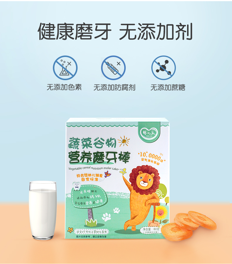 婴儿乐磨牙棒婴儿硬饼干牛奶蔬菜80g无添加宝宝零食6个月儿童辅食