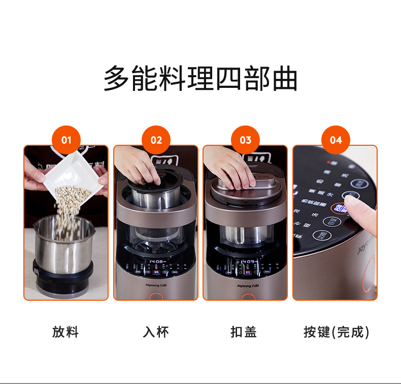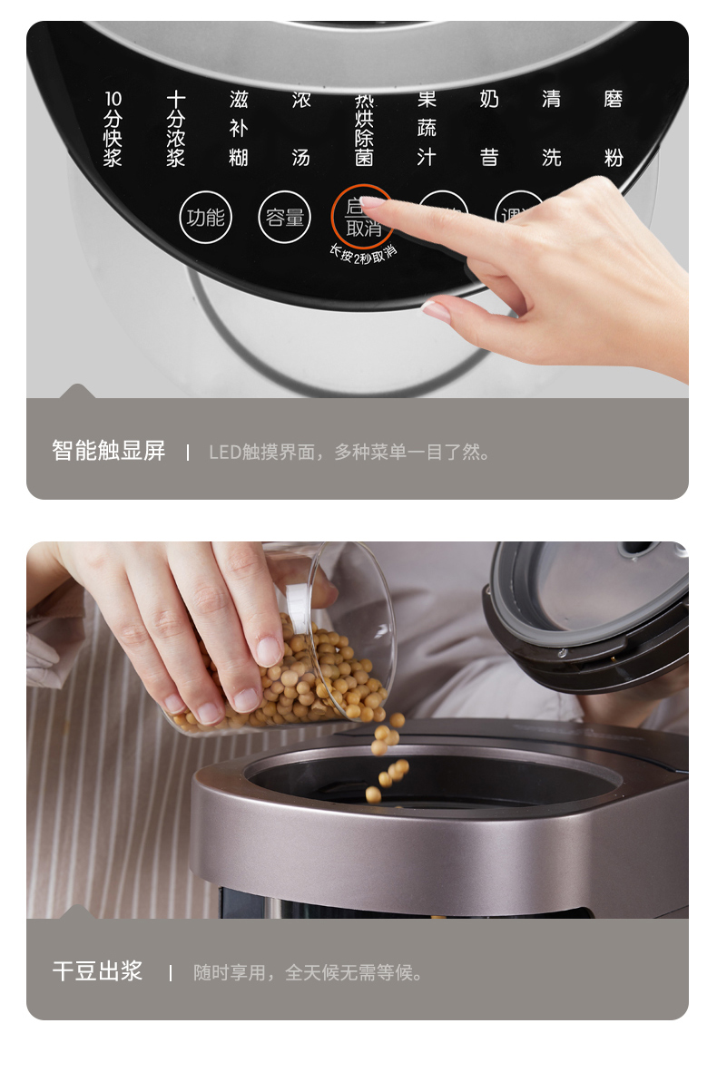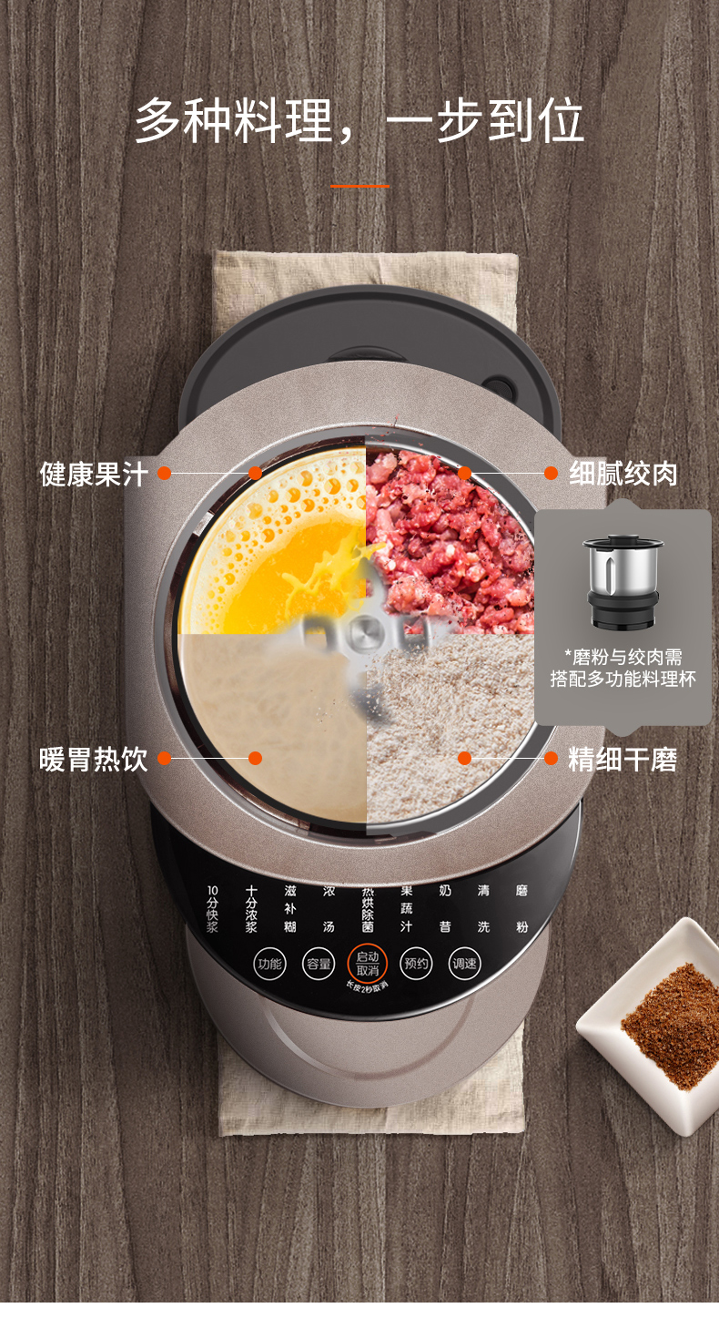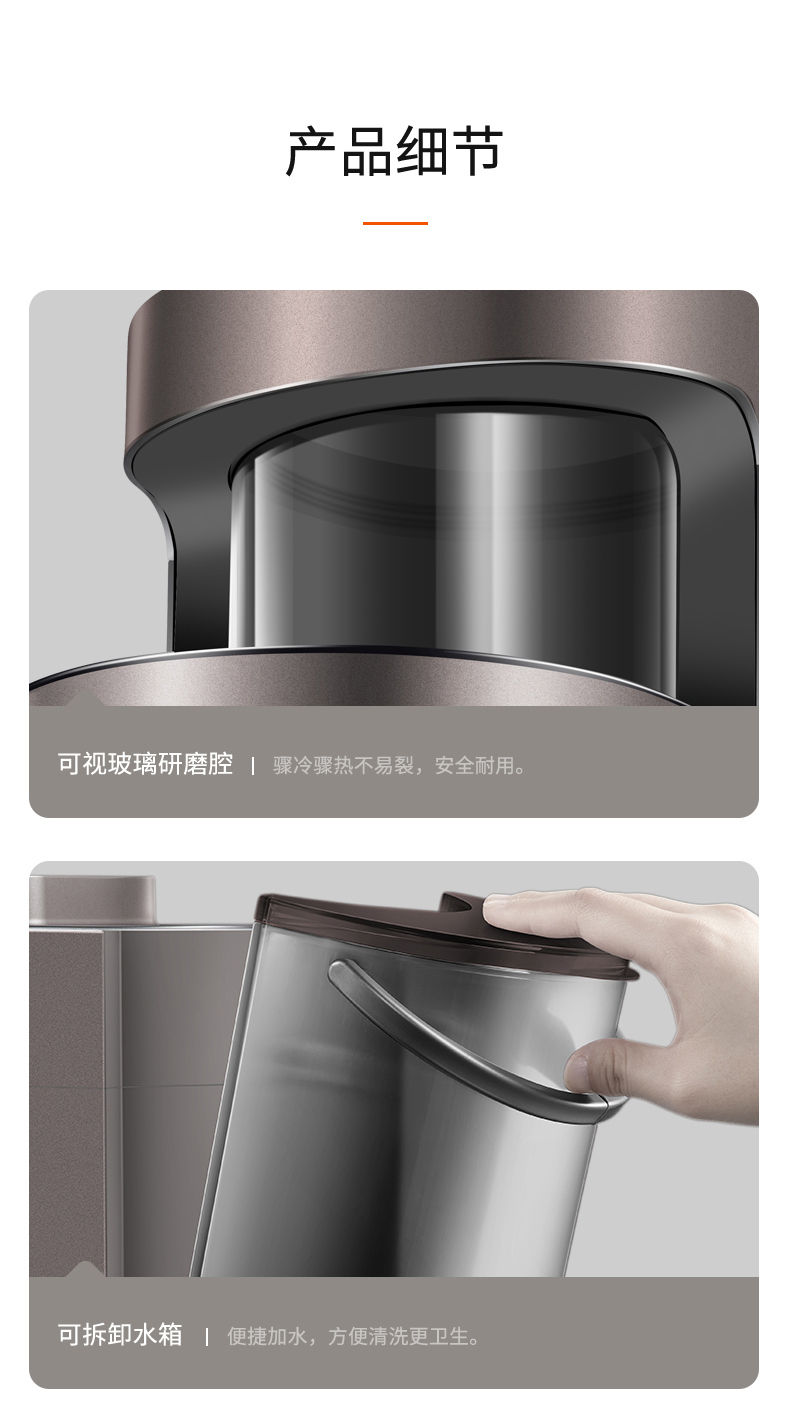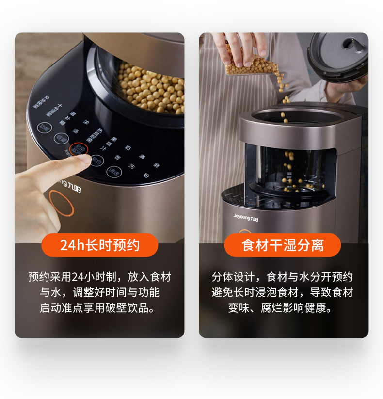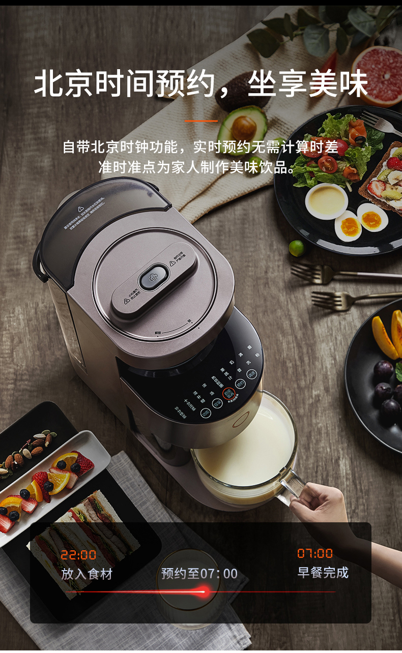 破壁无渣,立体环绕加热24小时预约,小体积多功能,自动清洗设计,时尚配色外观,早餐轻松无烦恼。