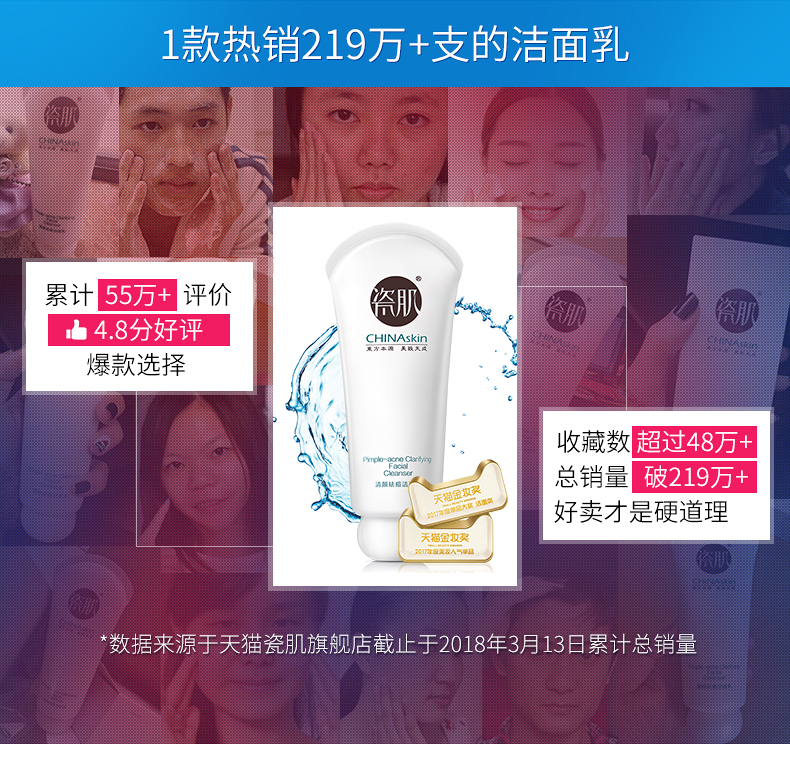 药妆大牌,天猫金妆奖人气单品,热销280万件,超过珠峰的高度25倍,深层清洁,控油祛痘,补水保湿,一支专治痘痘的洗面奶,男女通用哟!