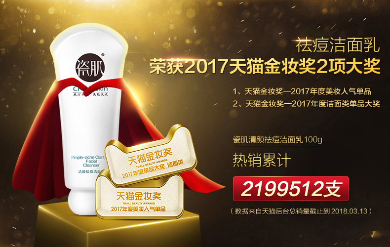 瓷肌祛痘洗面奶女男官网补水保湿清洁收缩毛孔控油黑头洁面