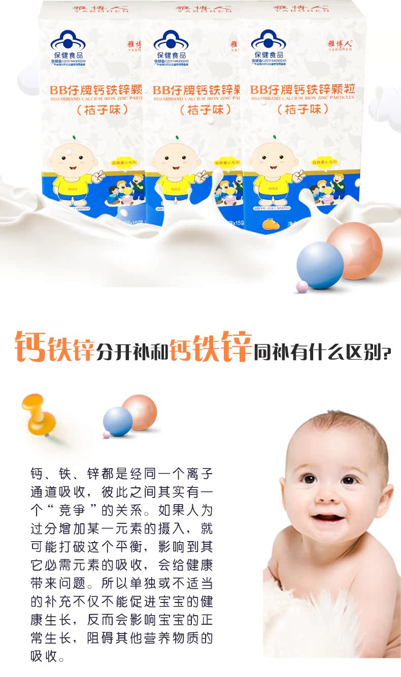 雅博人 宝宝钙铁锌同补 儿童成长 婴幼儿1-6岁婴儿小孩补钙冲剂