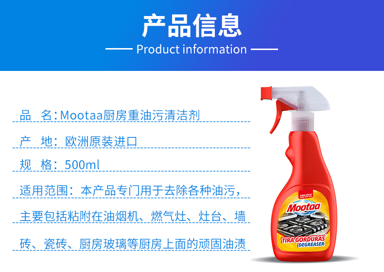 欧洲进口油污清洁剂抽油烟机清洗剂厨房重油污净强力去油污家用
