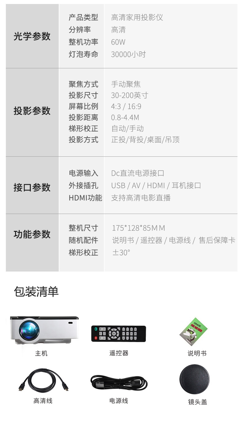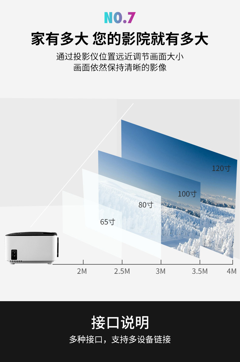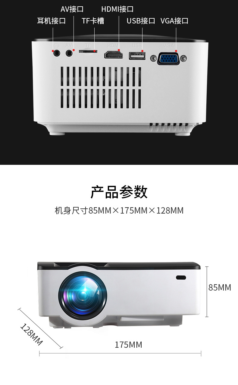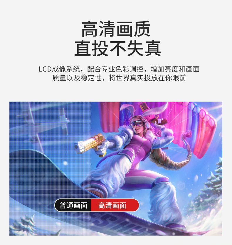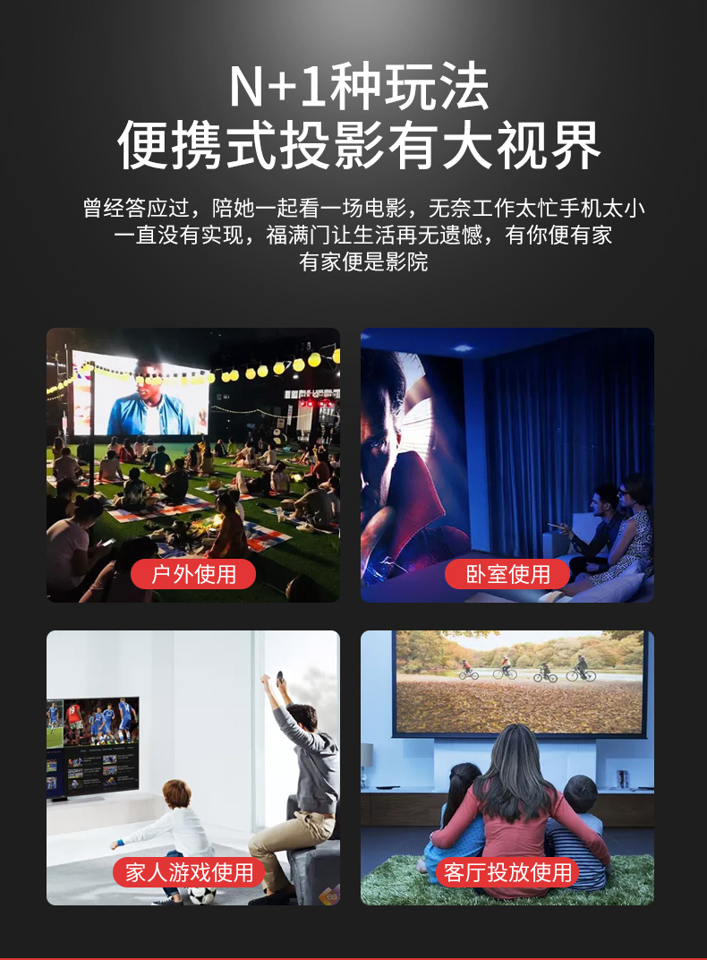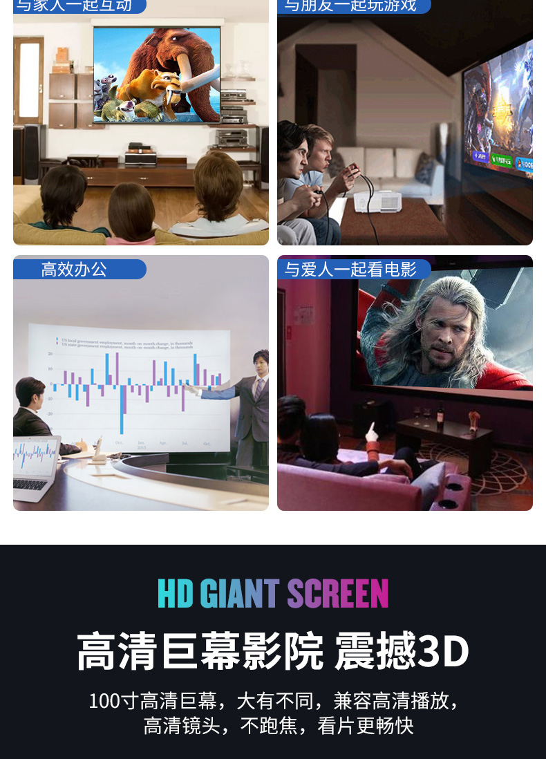 全新升级,画质更清晰,1080P高清画质配合专业色彩调控,支持手机电脑音箱多种设备连接,200英寸巨幕投影,3D高清片区,轻松在家装影院~【赠运费险】