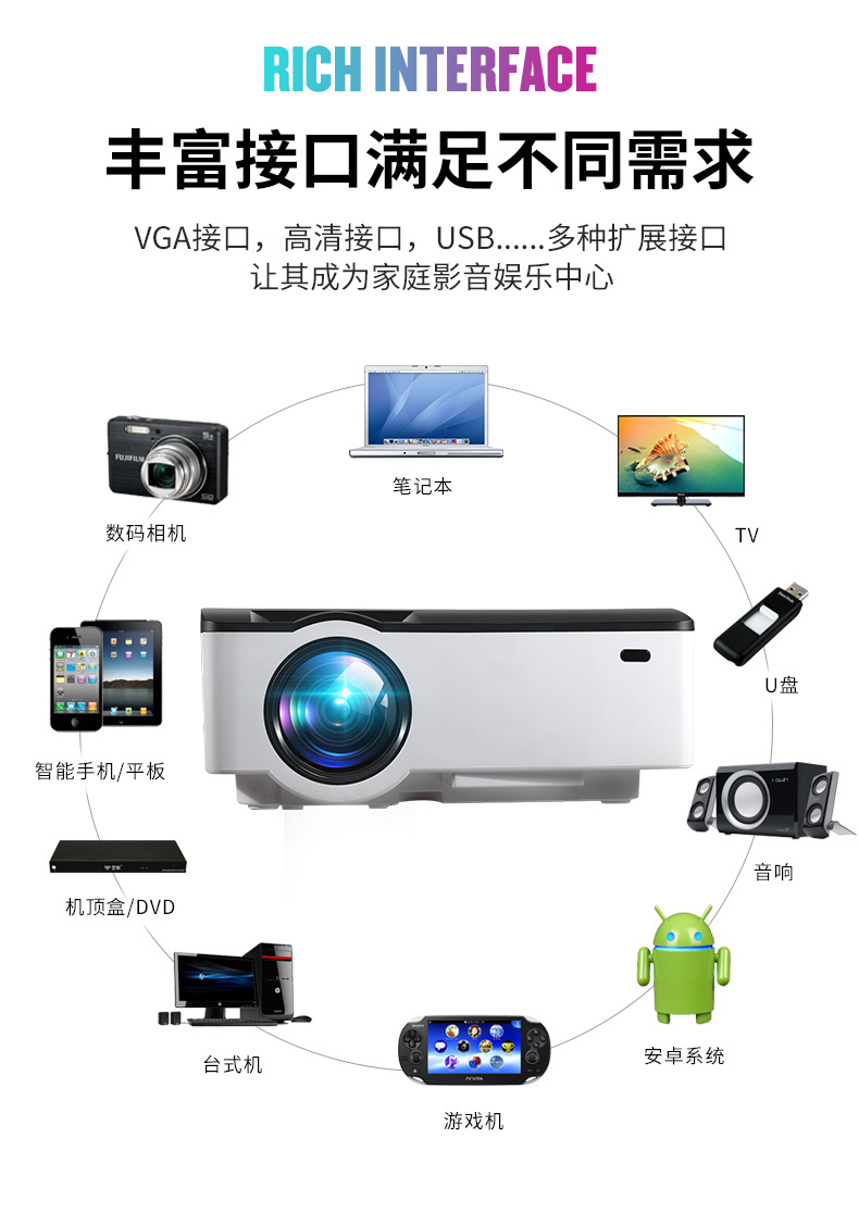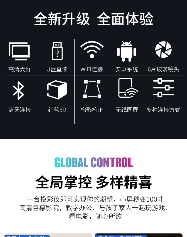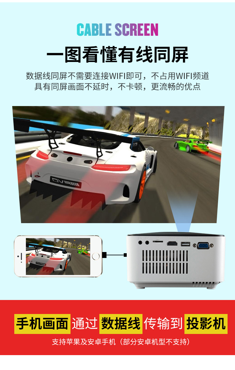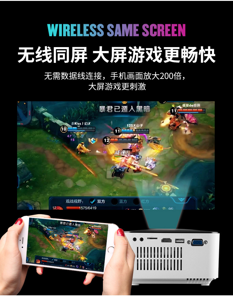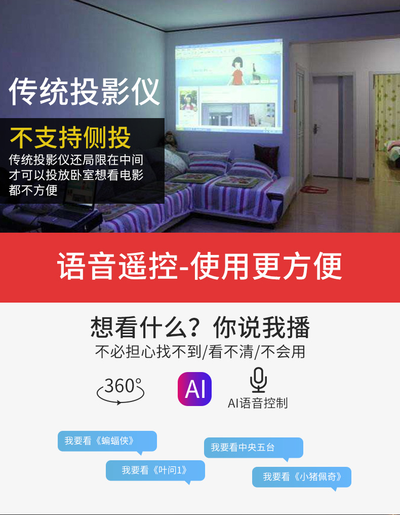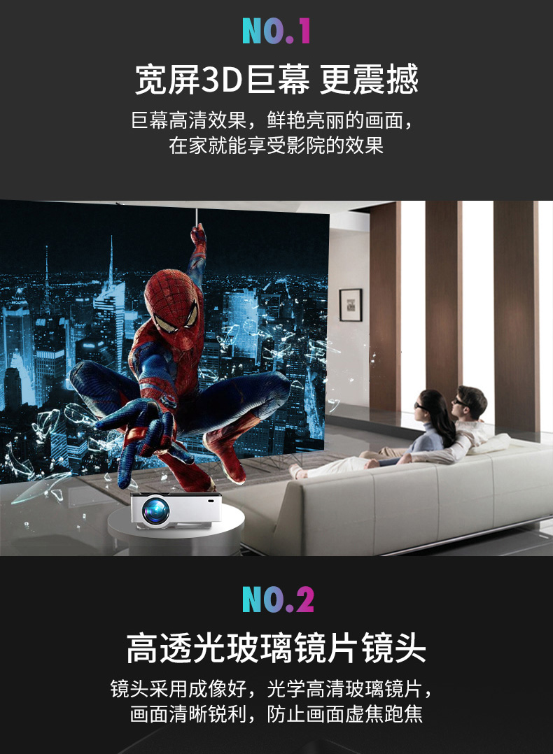 全新升级,画质更清晰,1080P高清画质配合专业色彩调控,支持手机电脑音箱多种设备连接,200英寸巨幕投影,3D高清片区,轻松在家装影院~【赠运费险】