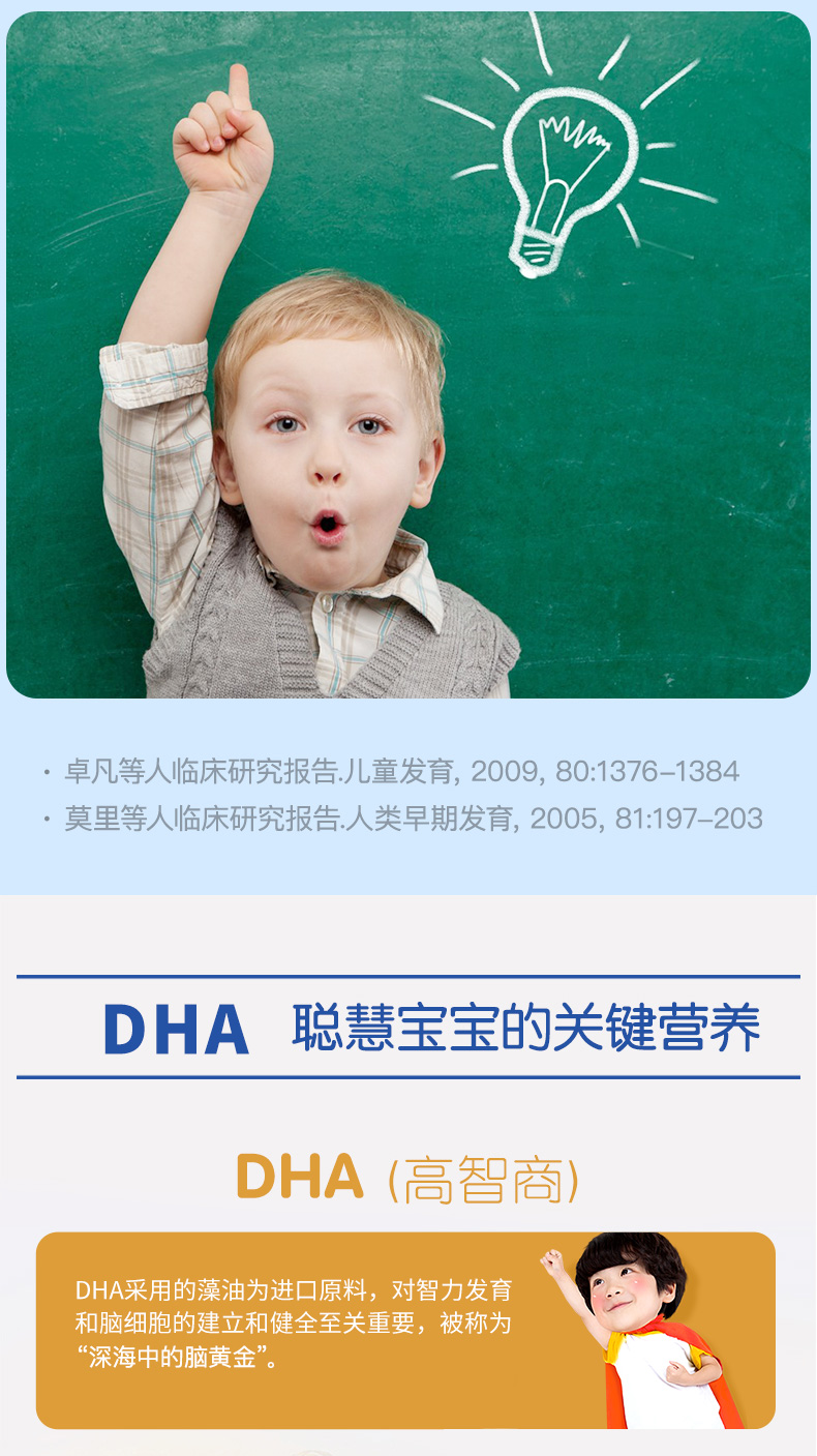 DHA海藻油,11种营养,3种矿物质,宝宝全面补充组合,强化大脑发育,均衡多种营养,营养全面,无香精,无色素,科学配方,均衡营养,长个子,壮骨骼,酸甜可口,美味补钙从现在开始。
