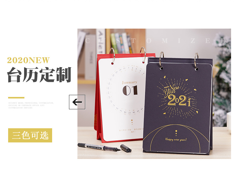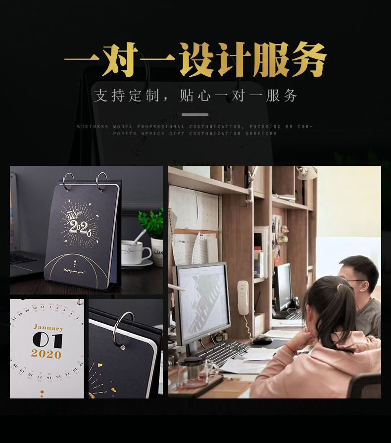 2020台历定制黑色底坐办公桌摆件日历精致大气商务企业台历黑封套