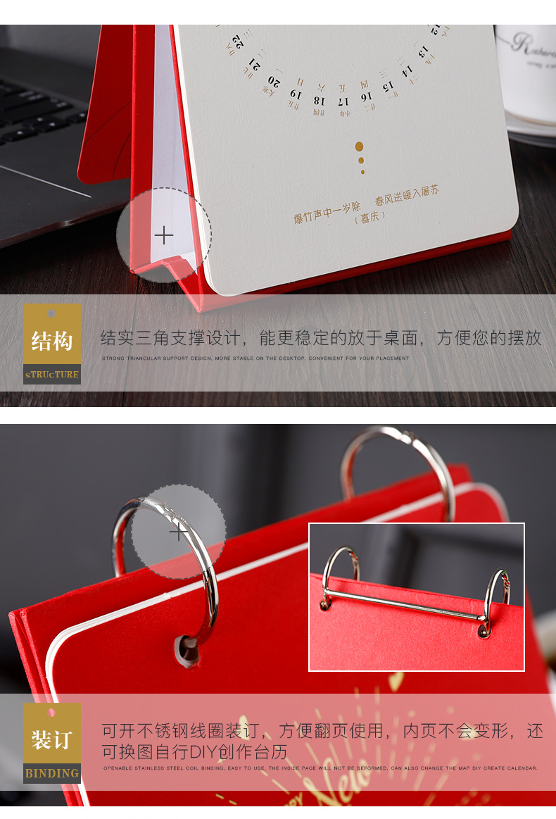 【2020年定制台历】浓厚中国风鼠年台历,横架烫金镭射,环保油墨,3色可选!印刷精致,字迹清晰。实力厂家,专注办公礼品定制服务!