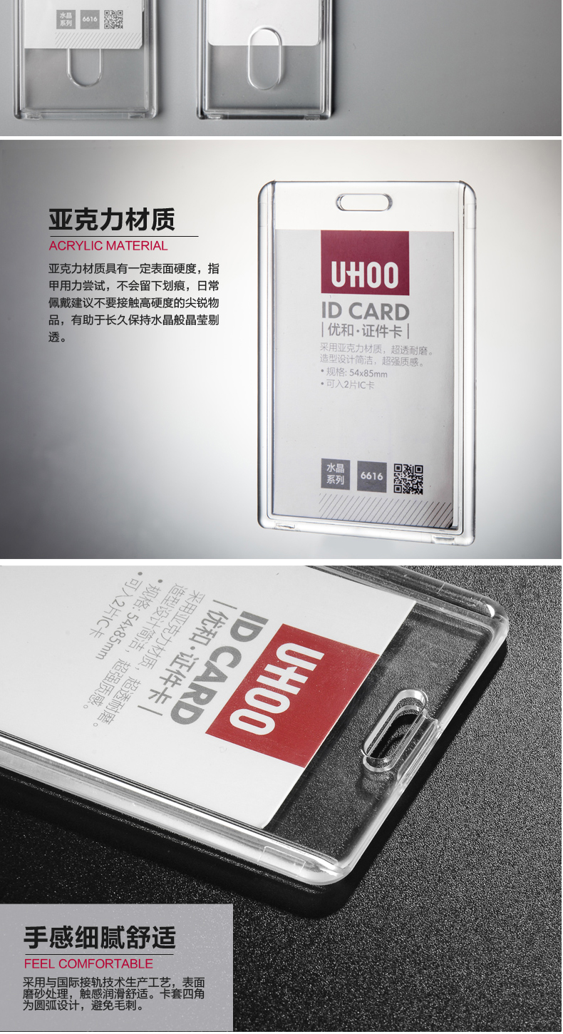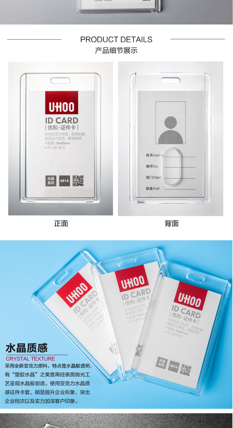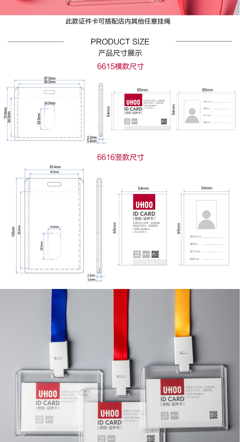 优和6616亚克力透明卡套工作证工牌定证件套卡套员工胸牌工作证学生证工作牌工牌胸卡公交卡定制印刷挂绳LOGO