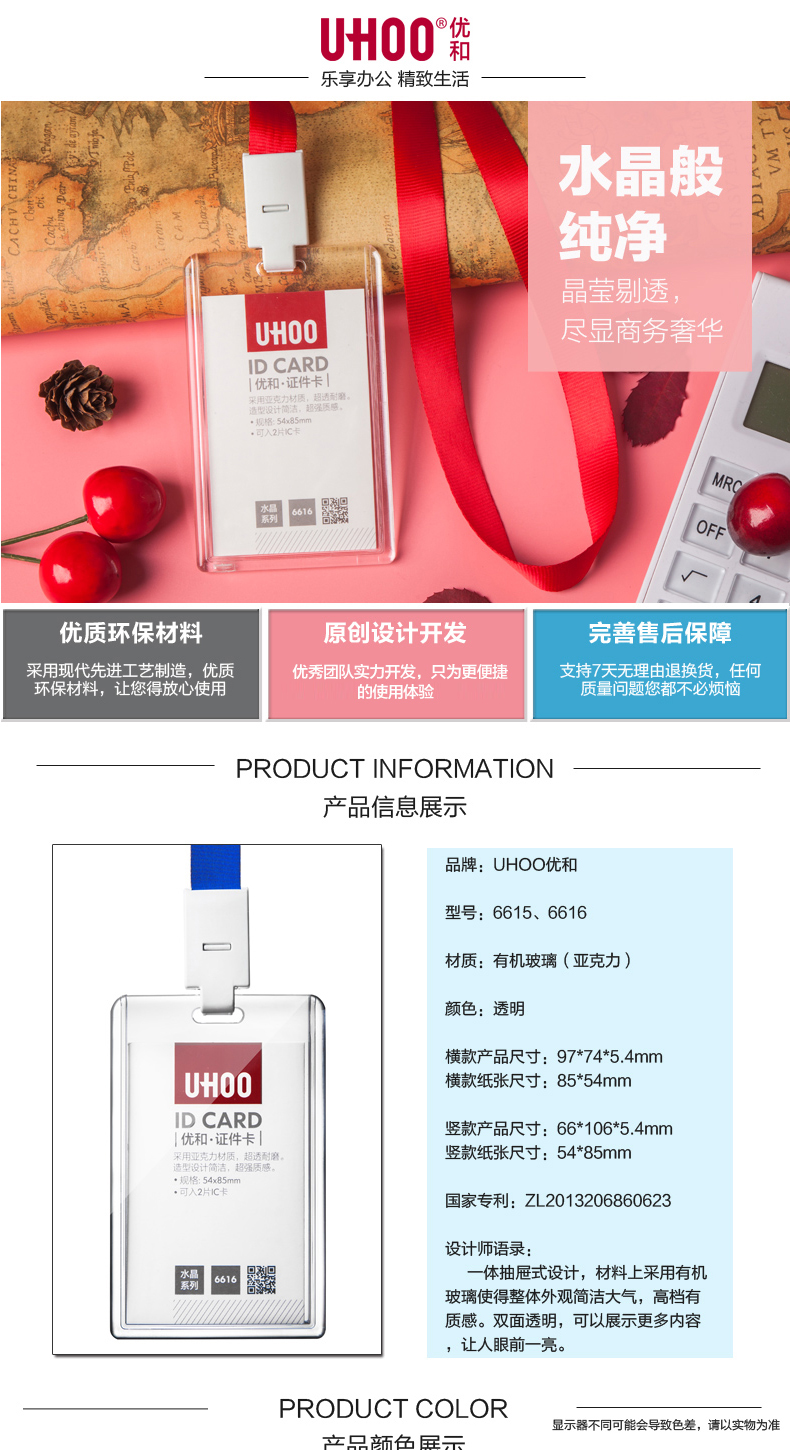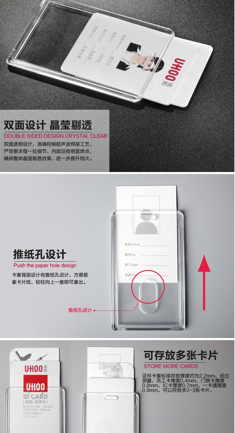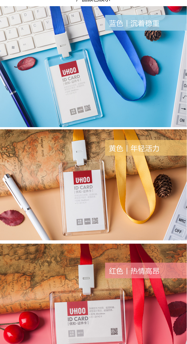 优和6616亚克力透明卡套工作证工牌定证件套卡套员工胸牌工作证学生证工作牌工牌胸卡公交卡定制印刷挂绳LOGO