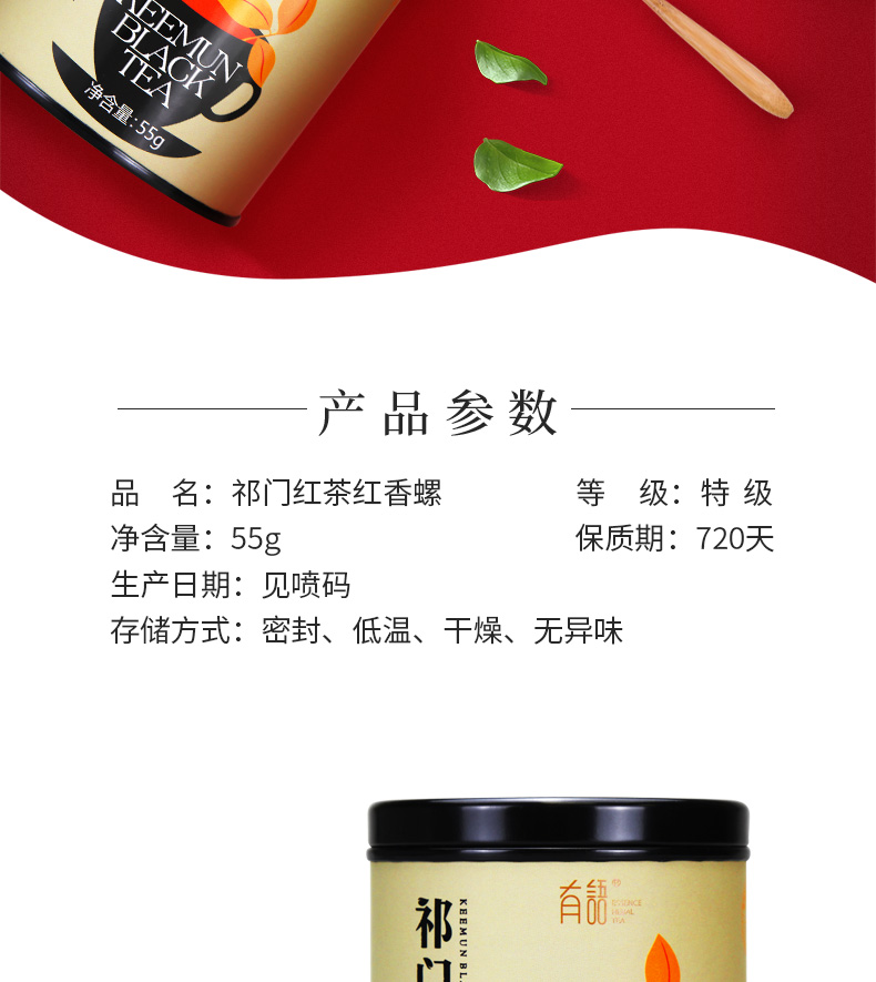 有语祁门红茶特级红茶茶叶红香螺55g罐装红茶祁门原产地