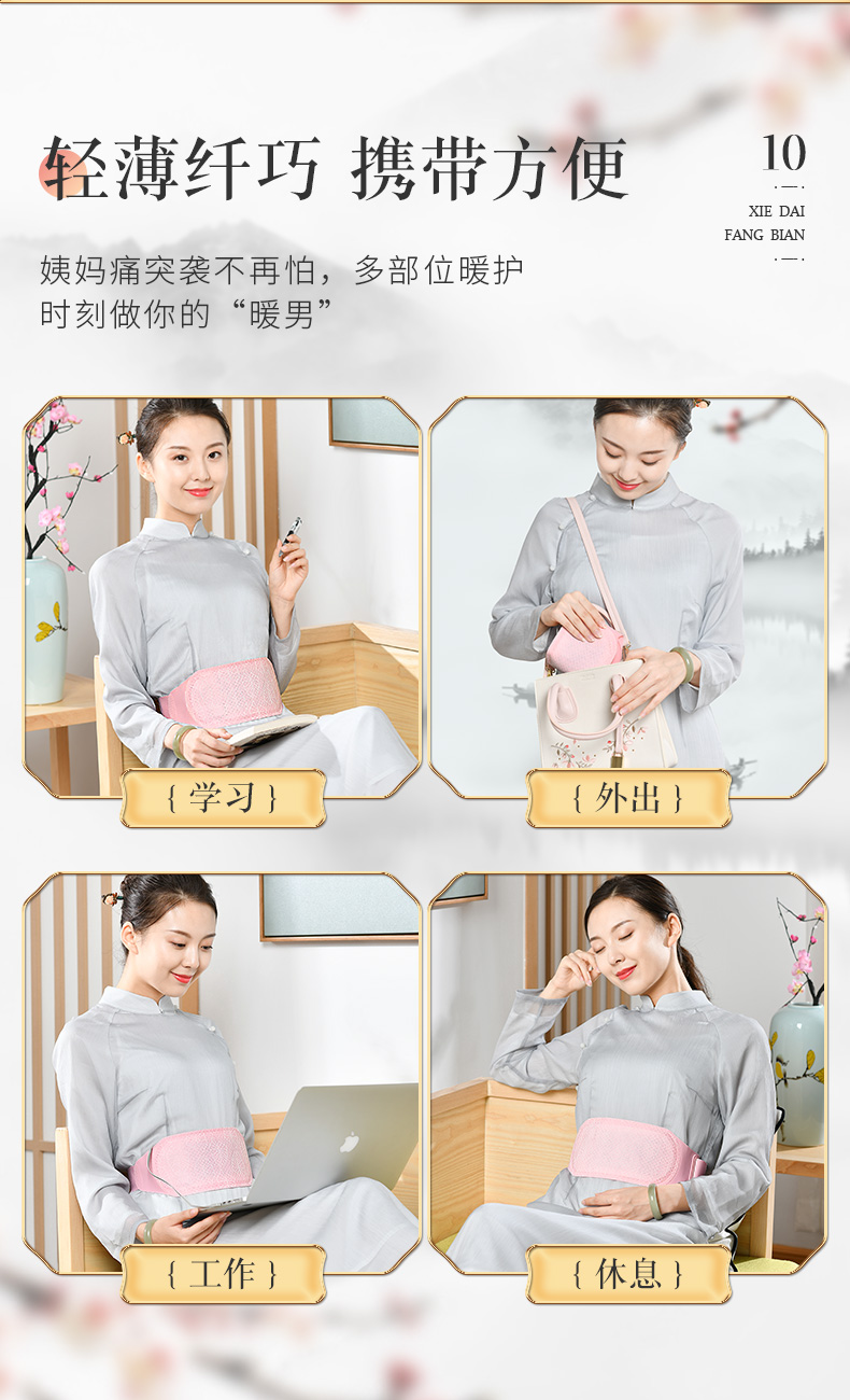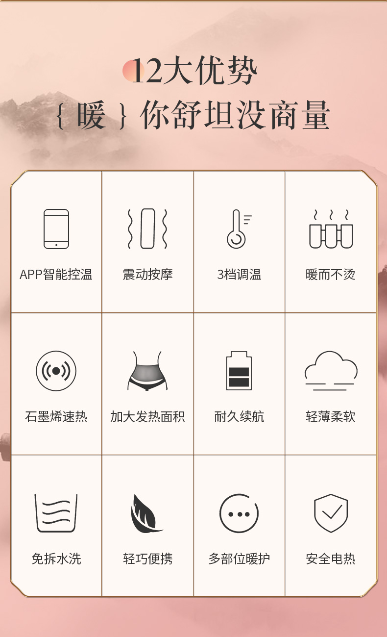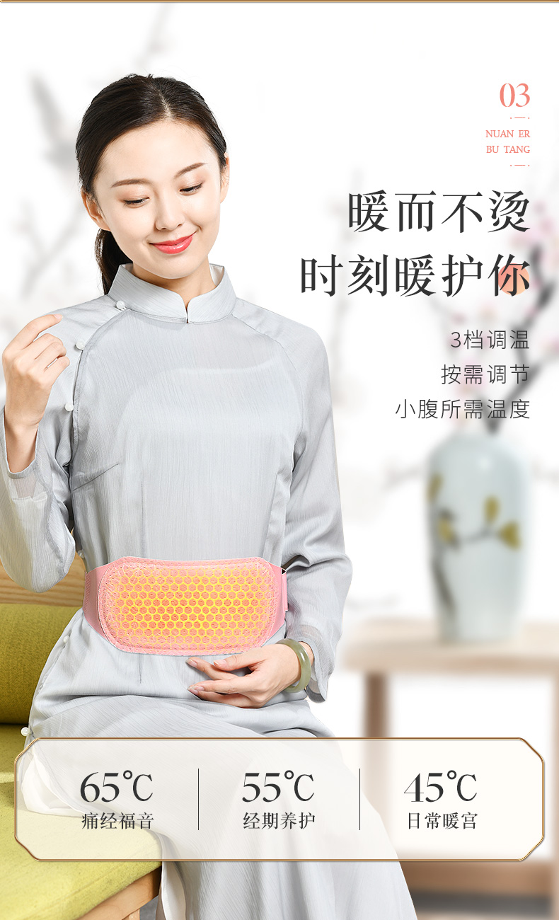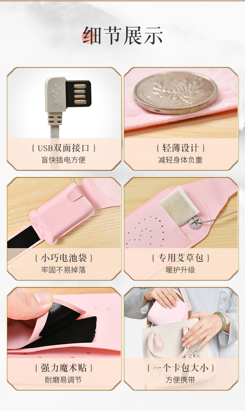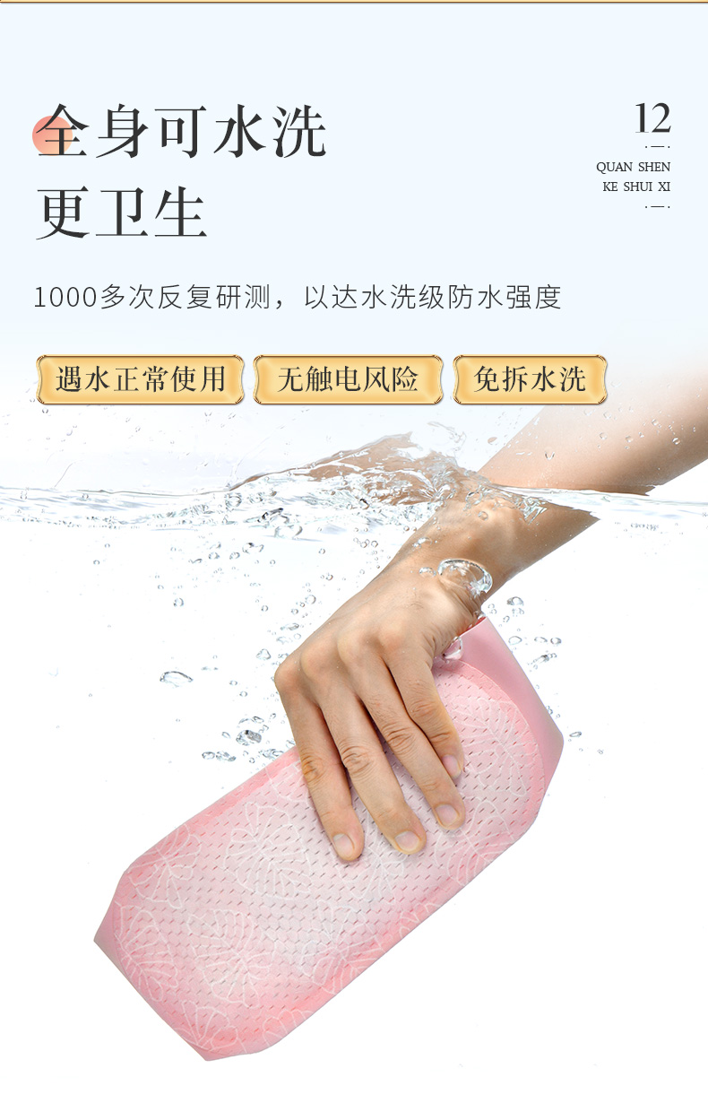 暖腰暖宫暖肩暖手,水电分离,安心使用。只能温控,自动断电,持续保暖,亲肤柔软长绒毛,防爆充电夹,自动断电放心使用!