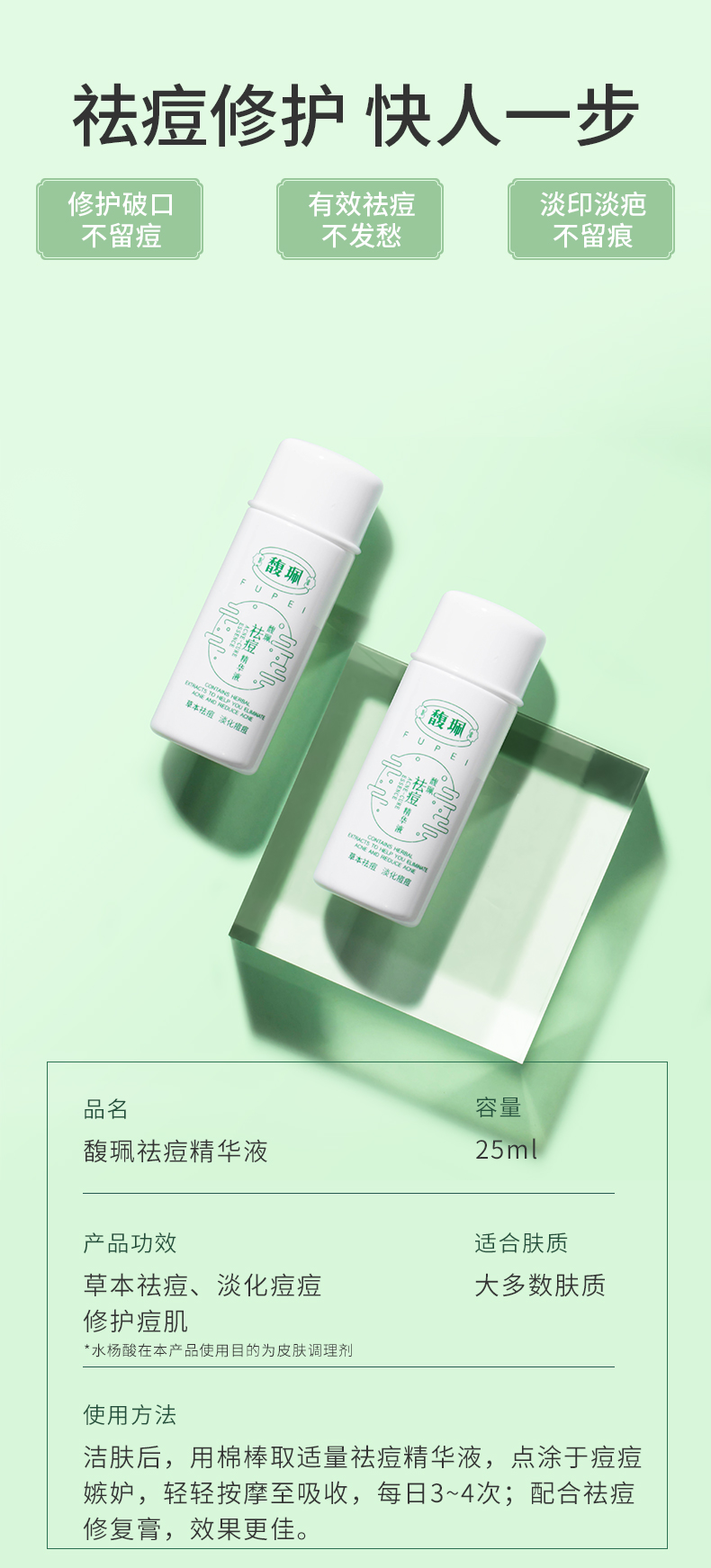 馥佩祛痘产品精华液女男士快速淡化痘印控油去粉刺青春痘前五强