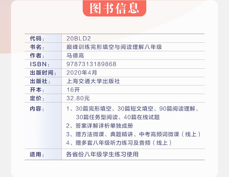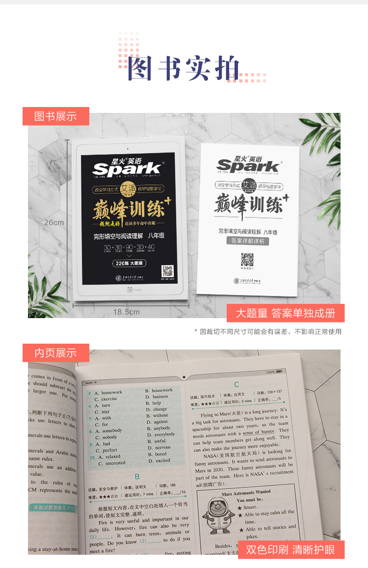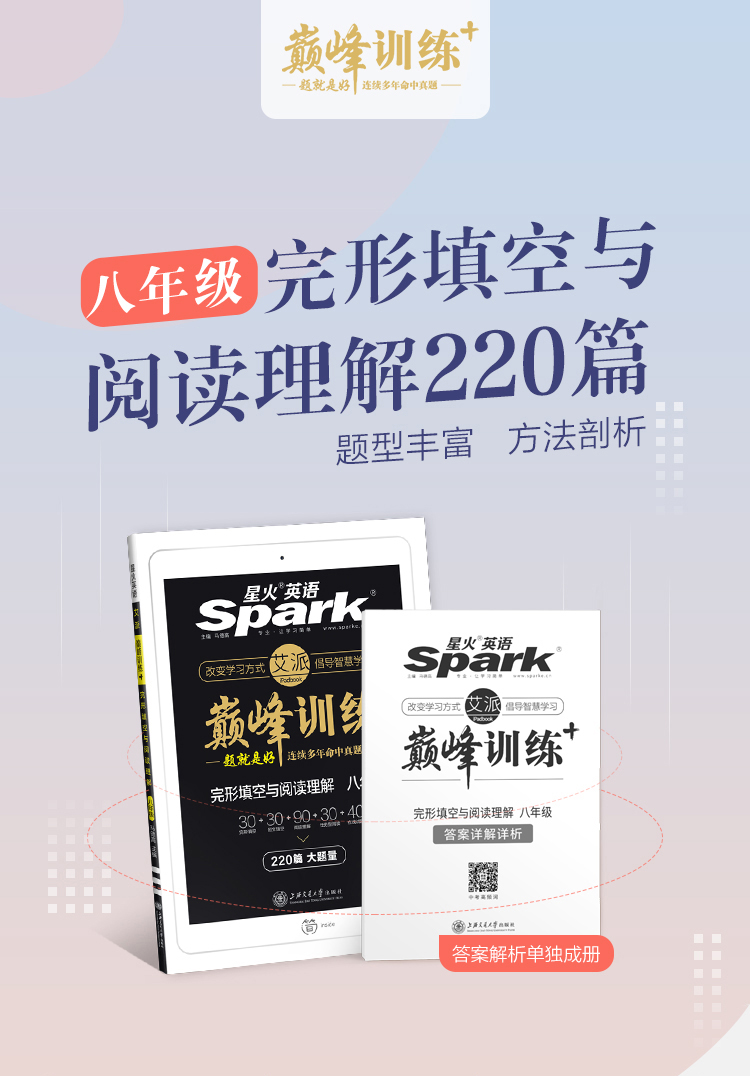 2020新版星火英语巅峰训练 八年级完形填空与阅读理解165篇+35篇人教版教材初中初二8年级上册下册完型阅读试卷教辅资料辅导书2019