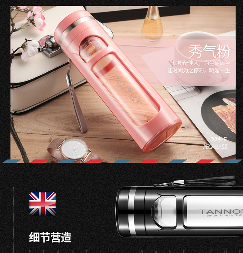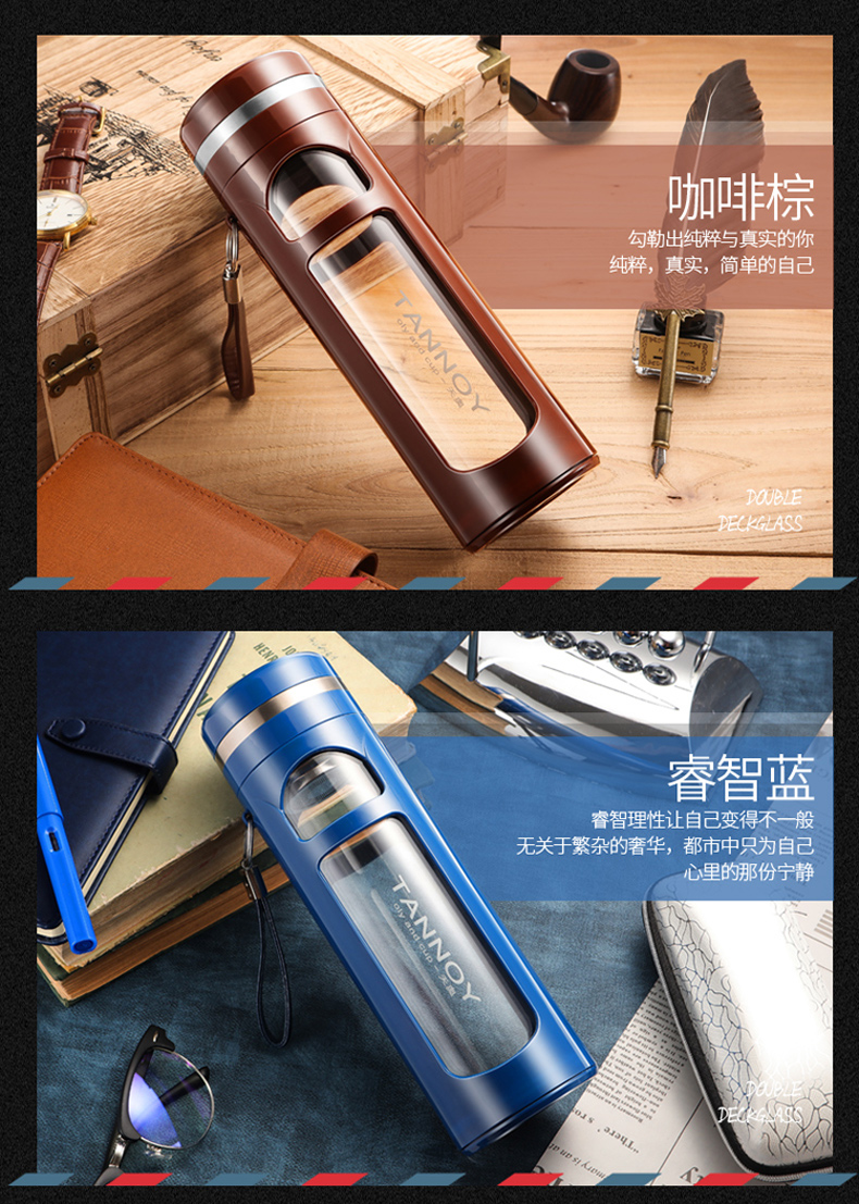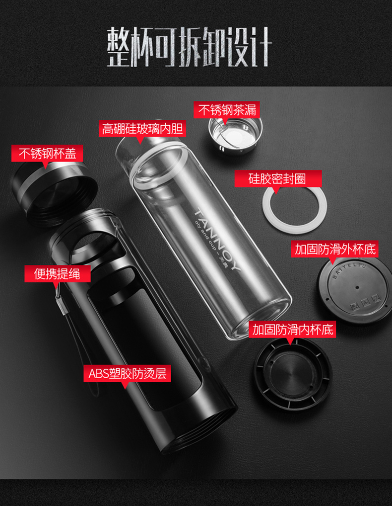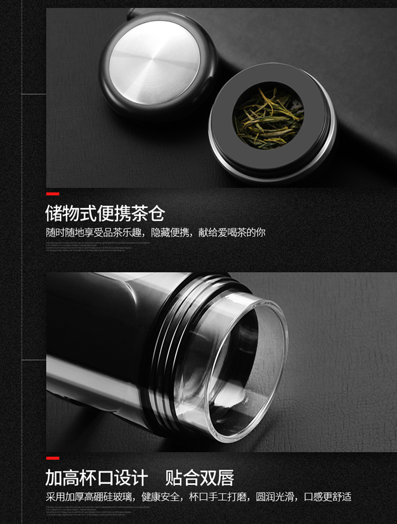 玻璃杯便携大容量茶水分离茶杯夏天男士双层杯子防摔水杯女随手杯