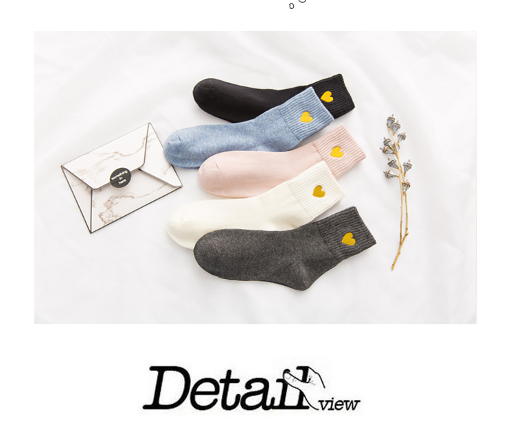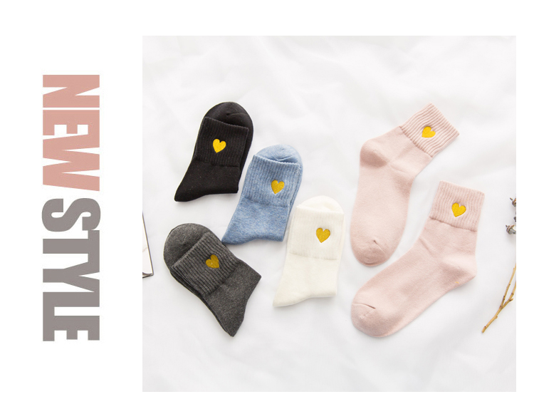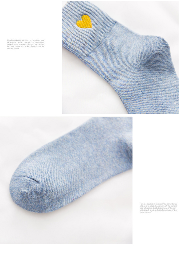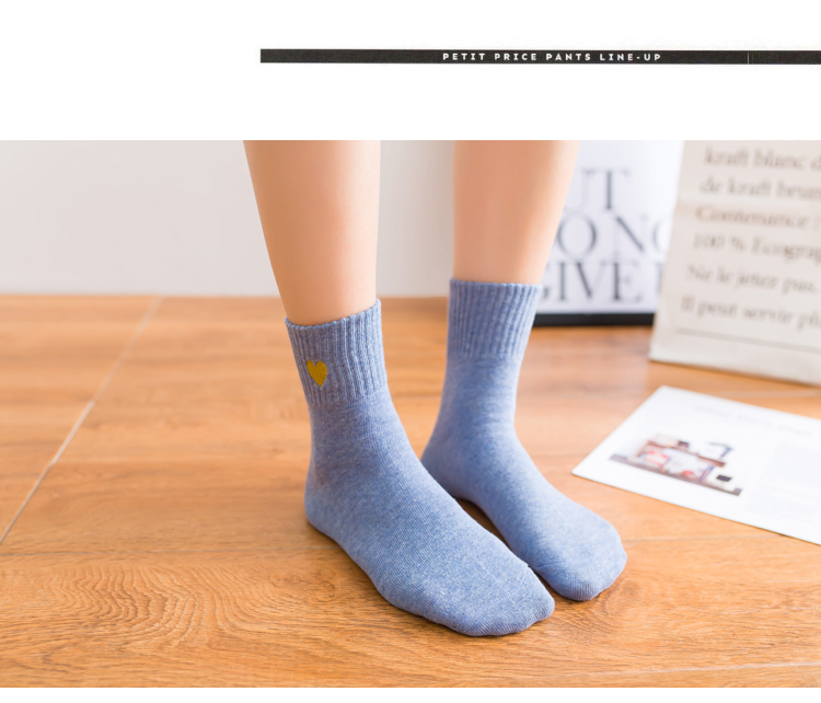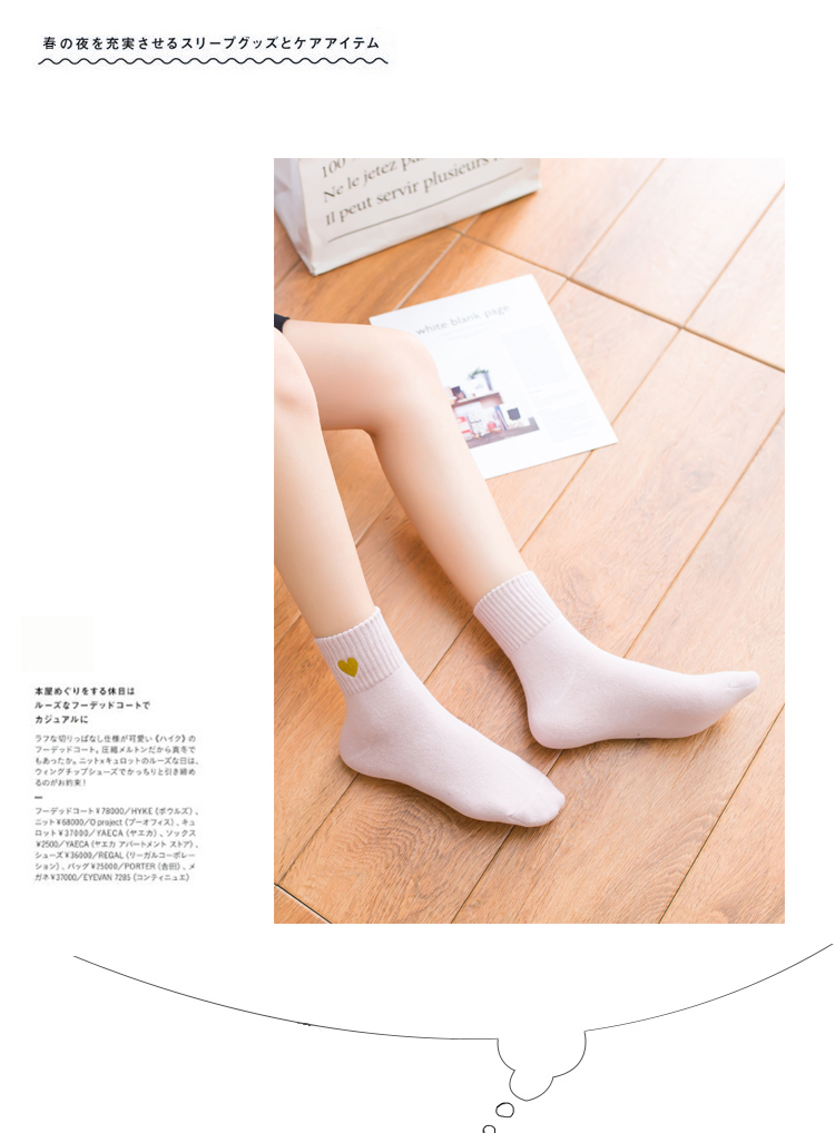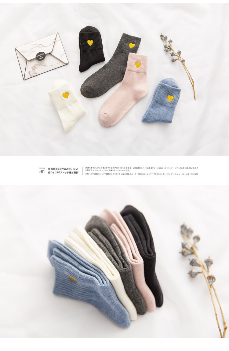 5双装日系原宿风刺绣爱心袜子女红桃心中筒袜韩国学院风秋季长袜