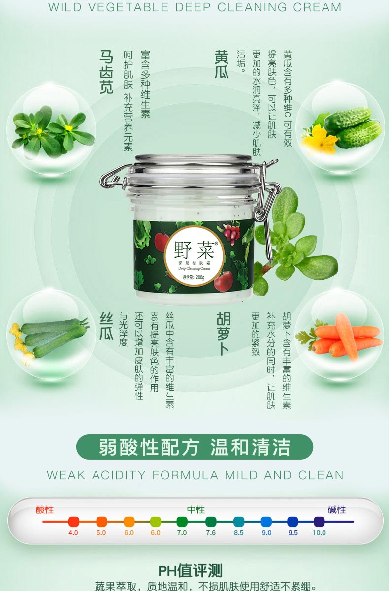 美优美野菜天然洁肤霜深层清洁霜毛孔控油保湿卸妆膏去角质素洁面