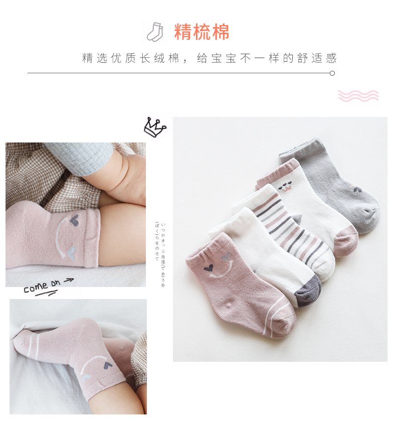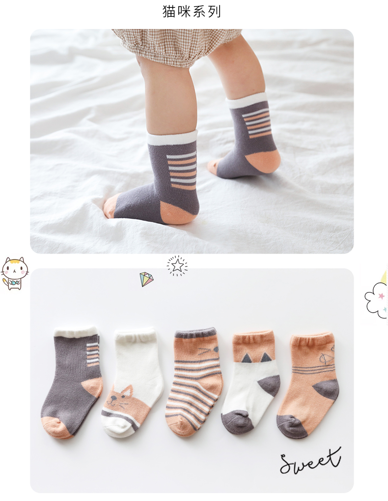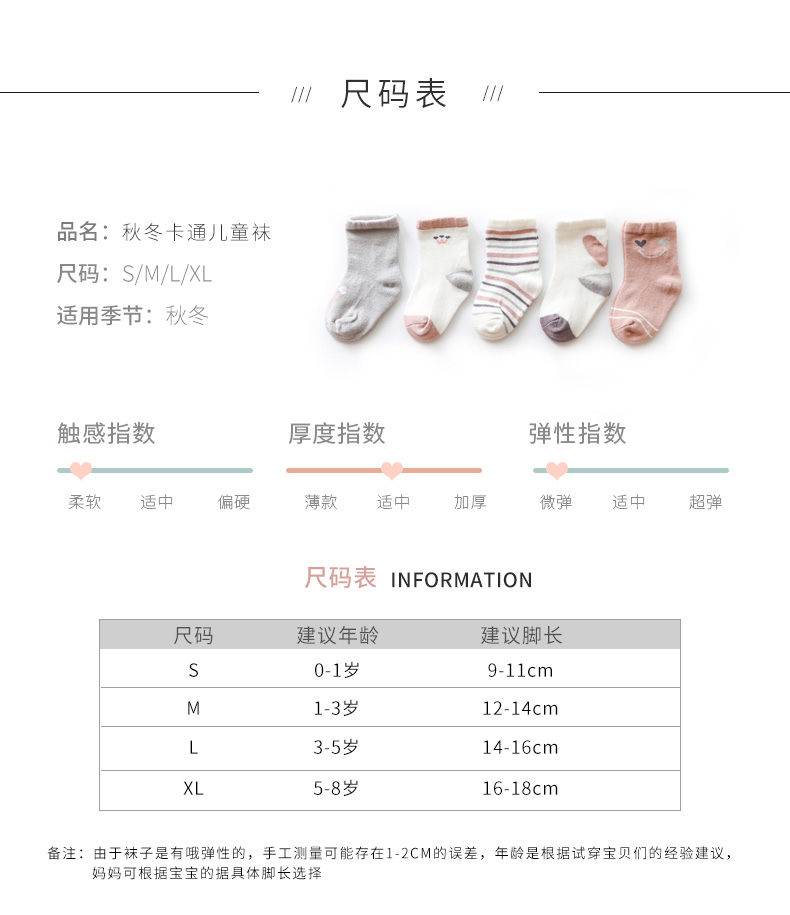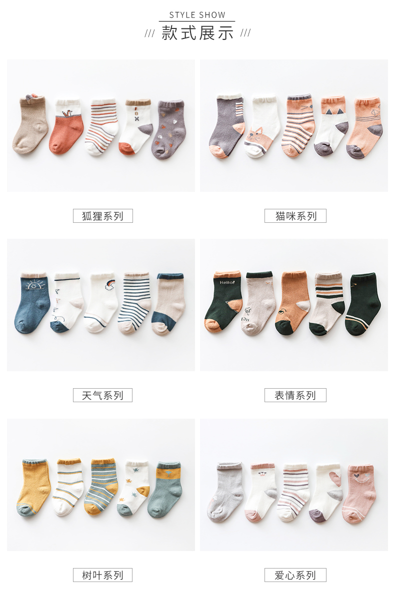 秋冬中筒儿童袜子精梳棉男女童宝宝袜子卡通婴儿袜秋袜【5双装】