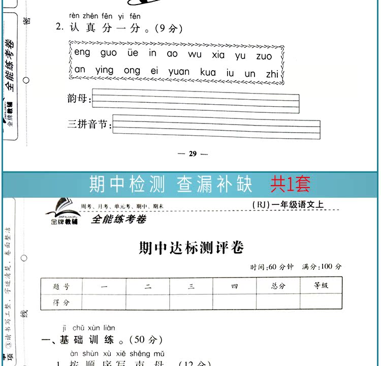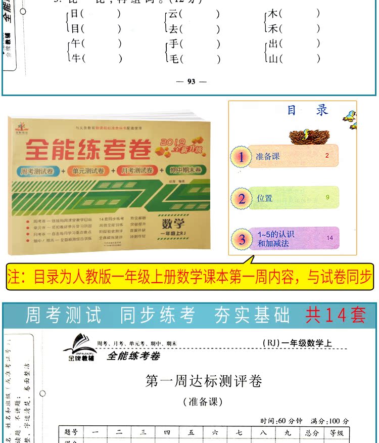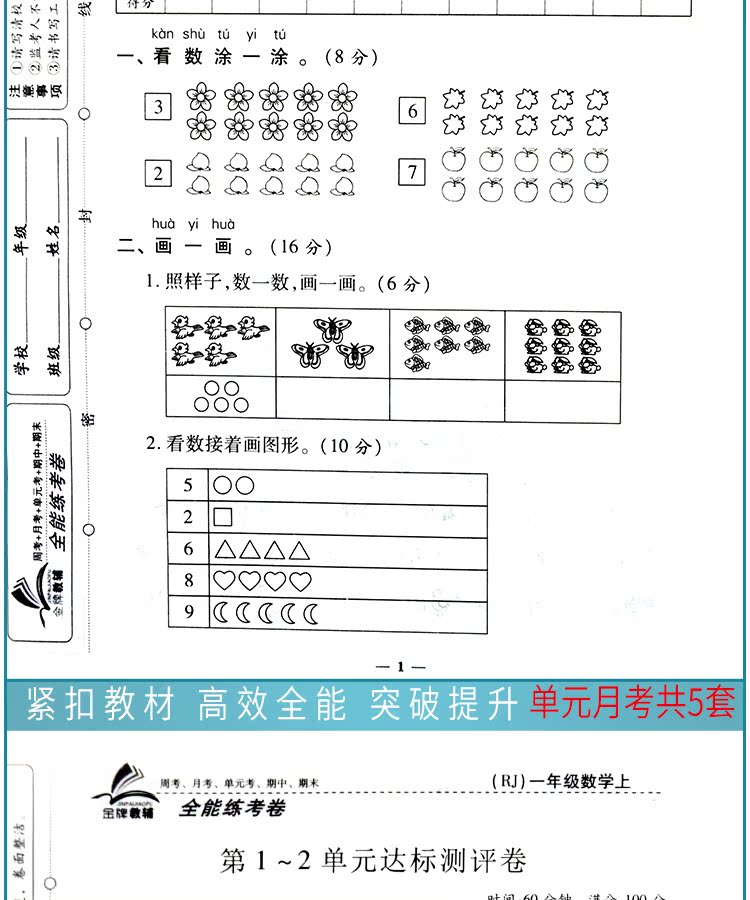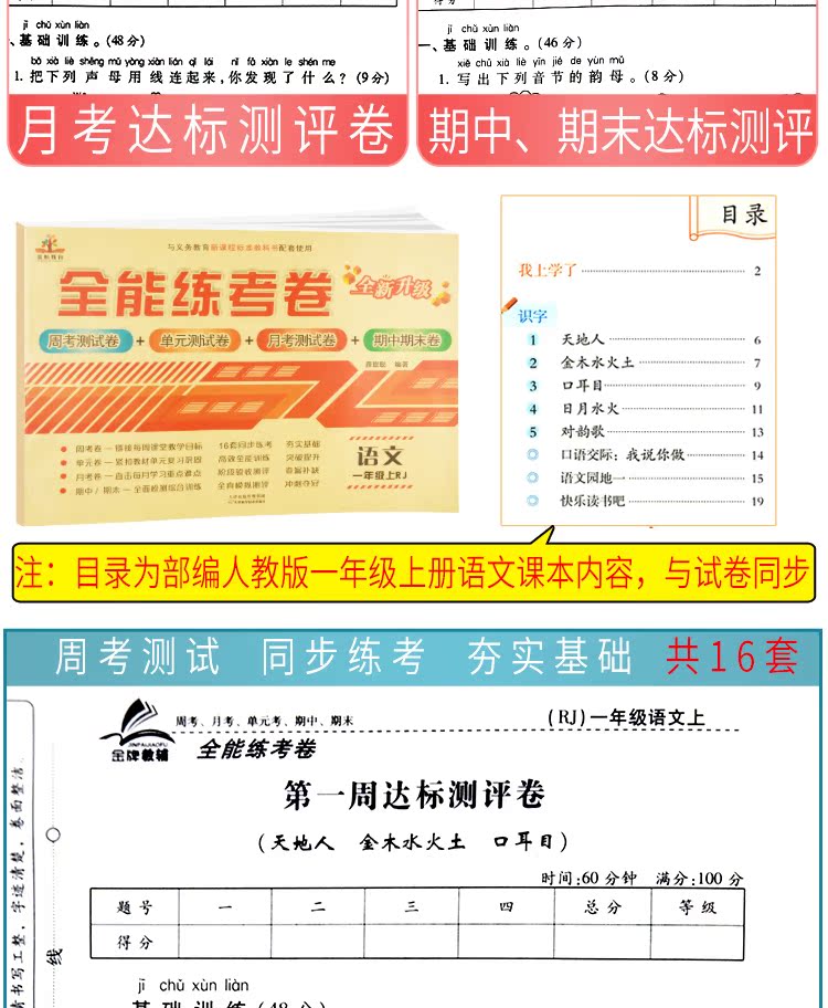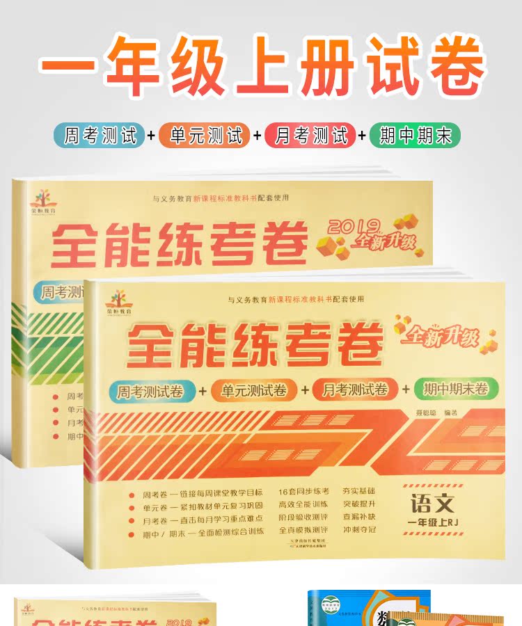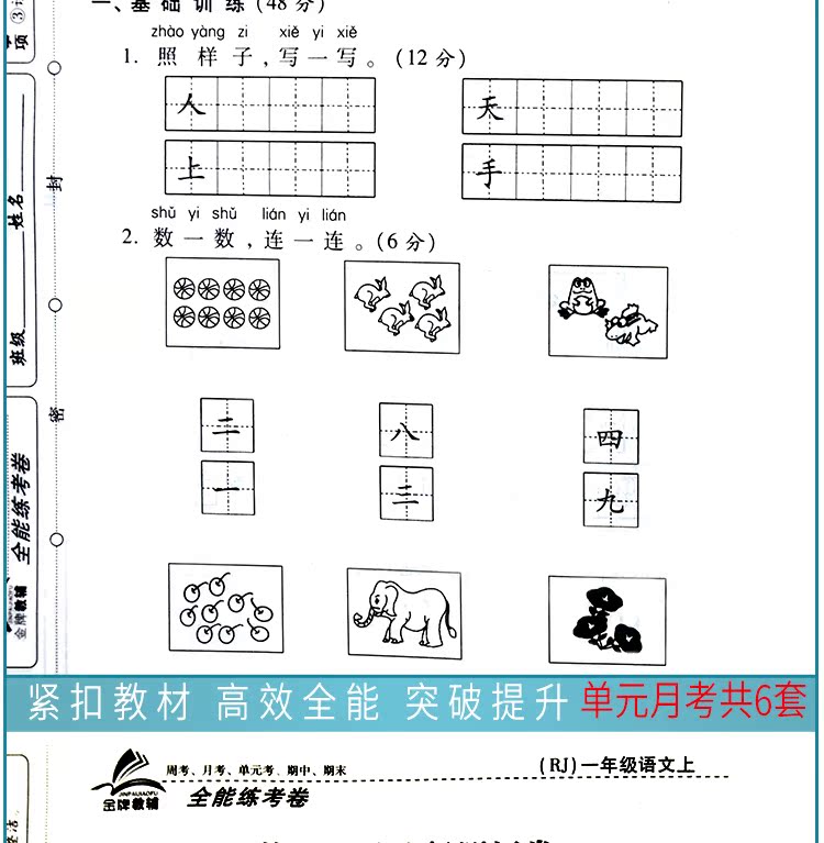 一年级上册同步训练小学2019秋新正版数学语文试卷 部编人教版教材全能练考卷一课一练1年级周单元月考测试卷期中期末卷全套 共2册