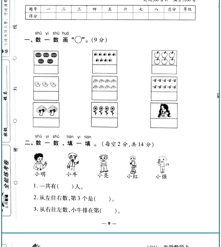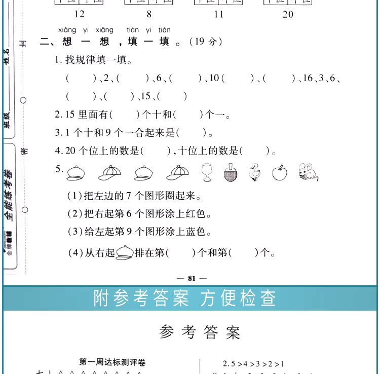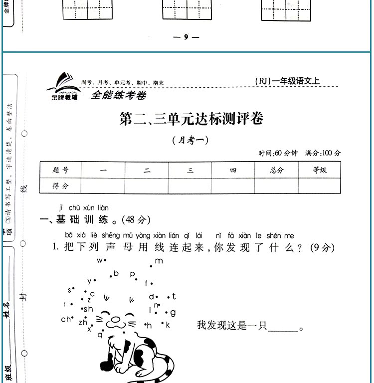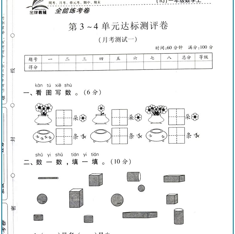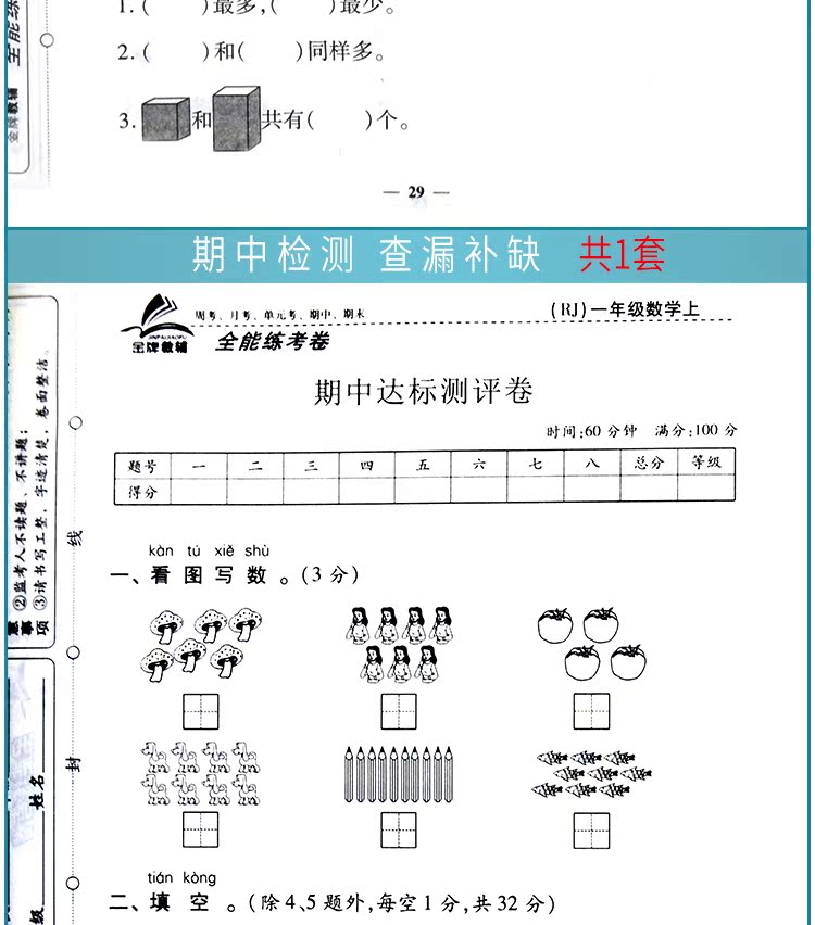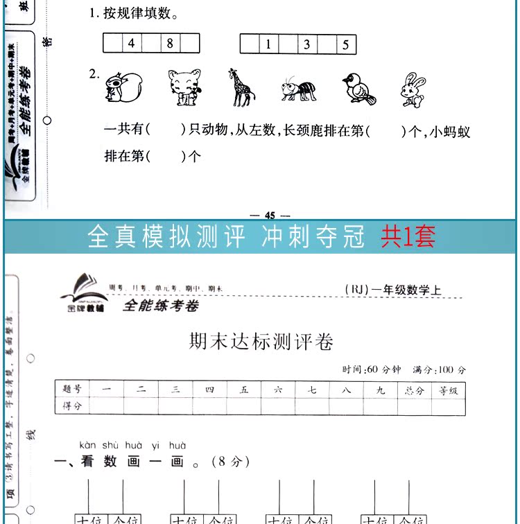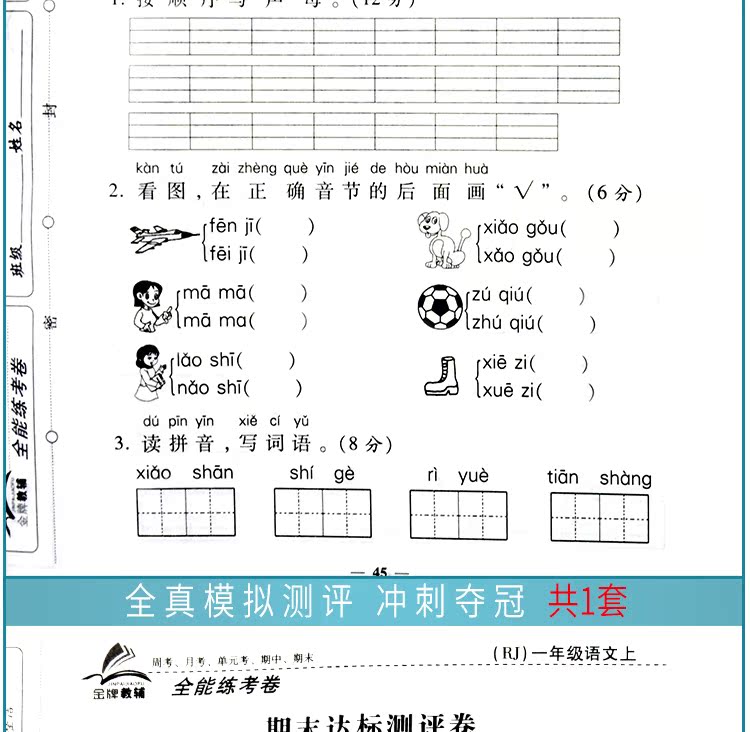 一年级上册同步训练小学2019秋新正版数学语文试卷 部编人教版教材全能练考卷一课一练1年级周单元月考测试卷期中期末卷全套 共2册