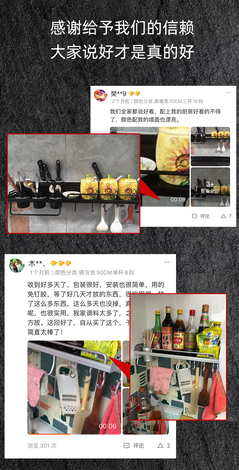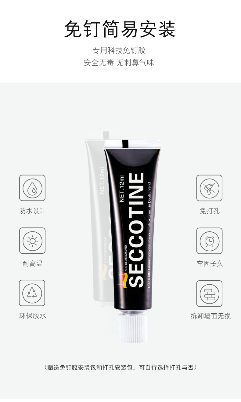 采用Rohs欧盟环保标准材质,两种安装方式可选(打孔/免打孔),承重100KG,一个字,稳!【赠运费险】