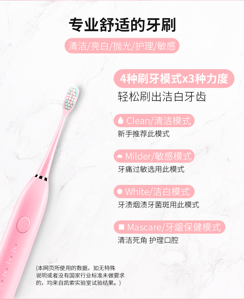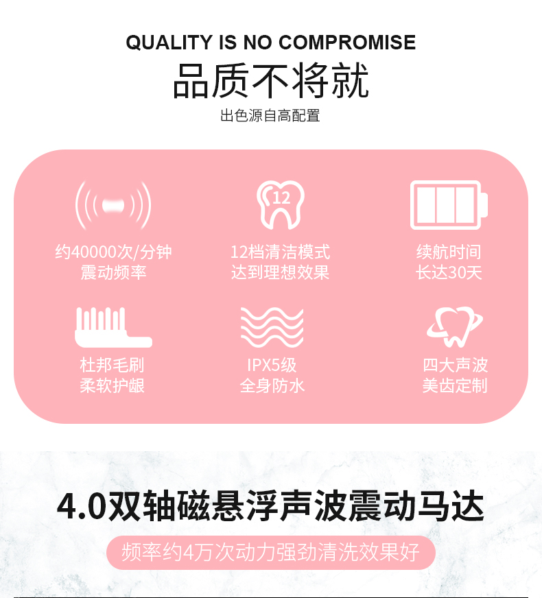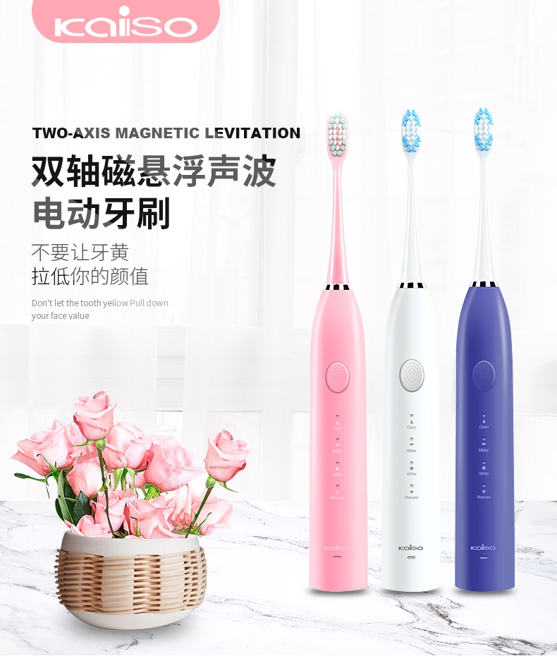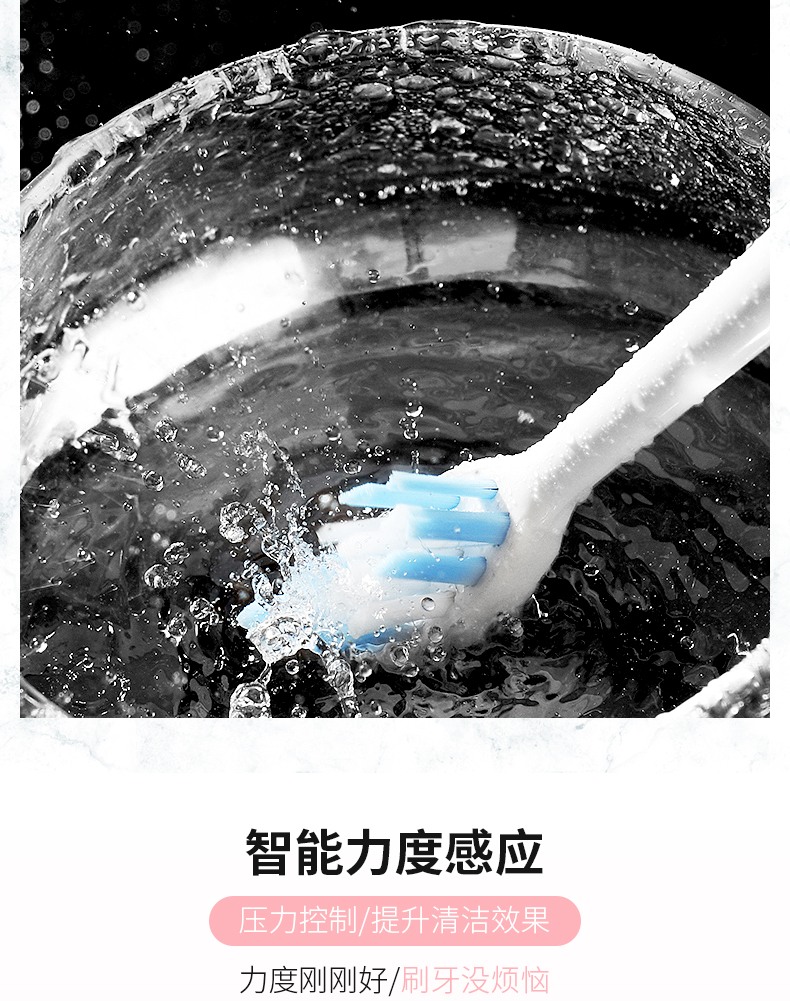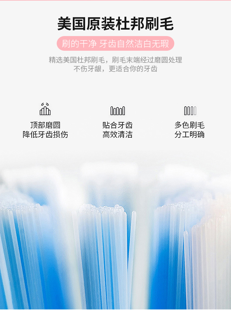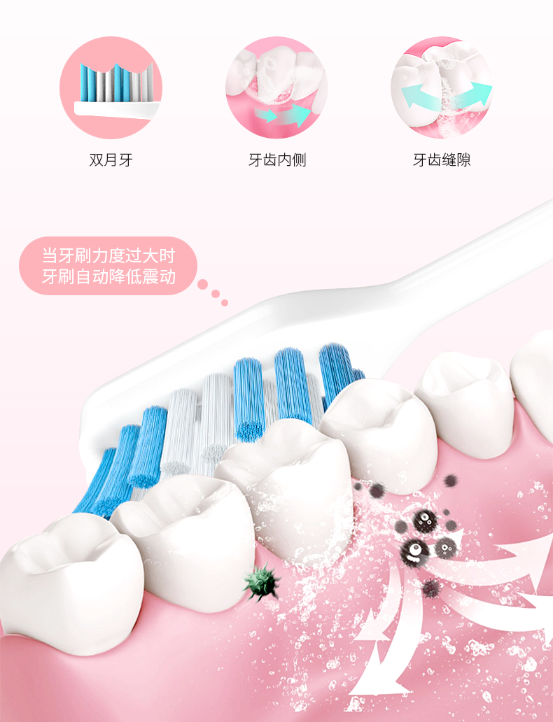 柔软的刷毛材质,触感细腻,带来舒适的穿着体验,双轴磁悬浮电动牙刷