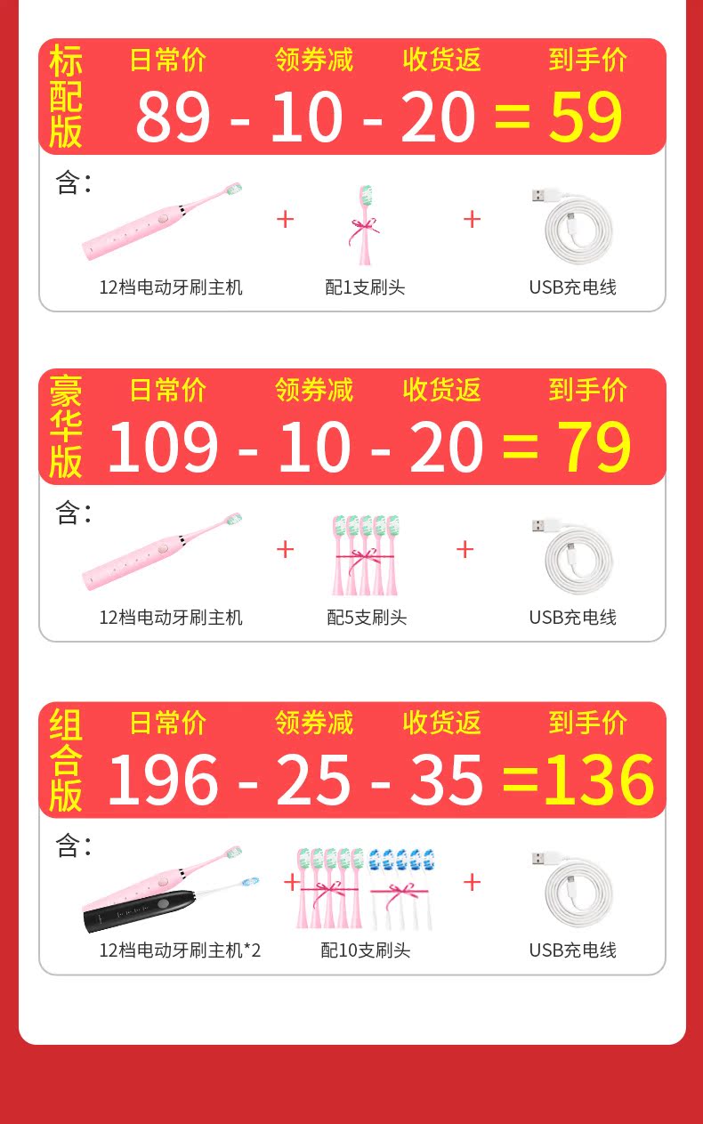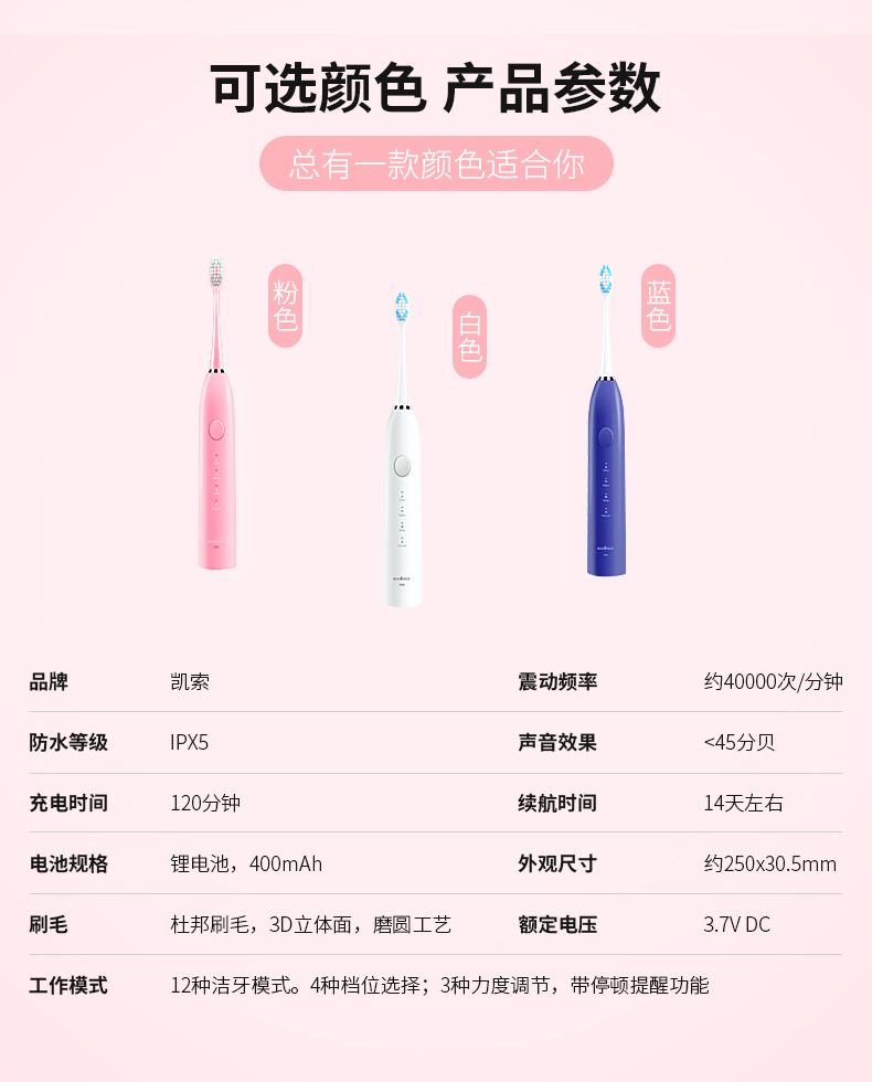 凯索电动牙刷成人声波充电式学生党情侣套装2支软毛全自动牙刷女