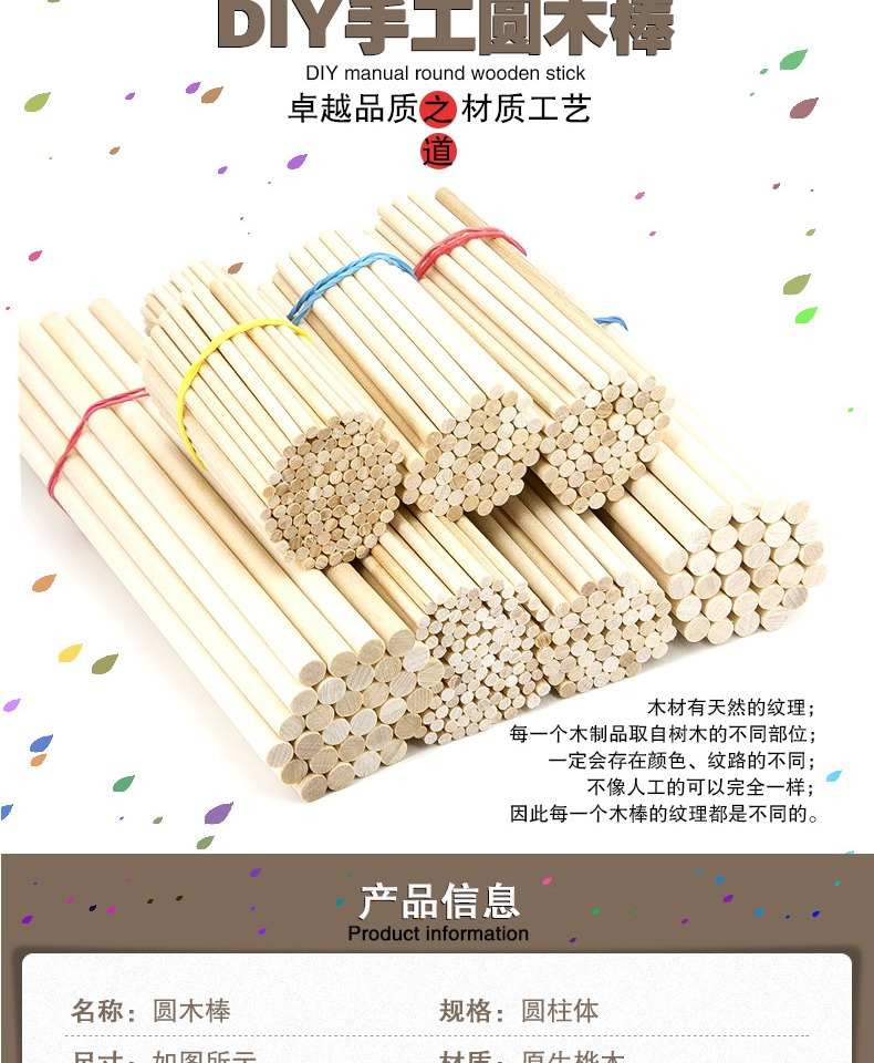 圆木棒diy手工制作材料,建筑模型沙盘创,意拼接竹棒木棒木条木棍,正品保证,赠运费险。