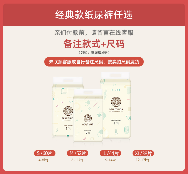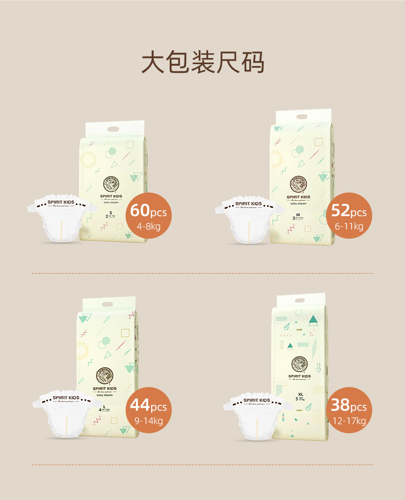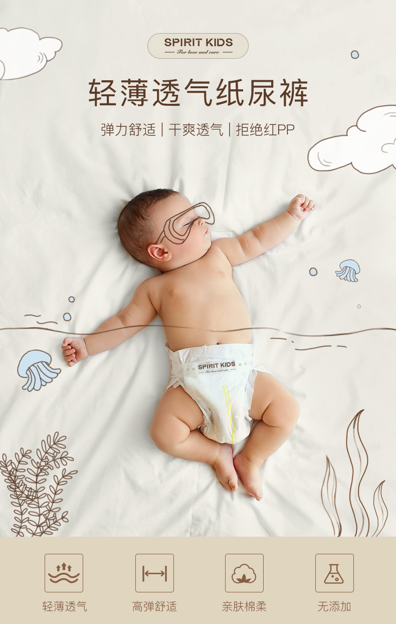 spiritkids婴儿尿不湿 新生儿纸尿裤SMLXL轻薄透气干爽宝宝尿片