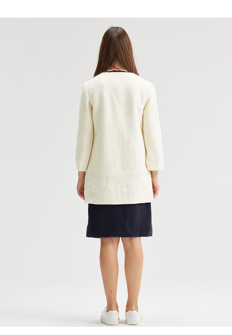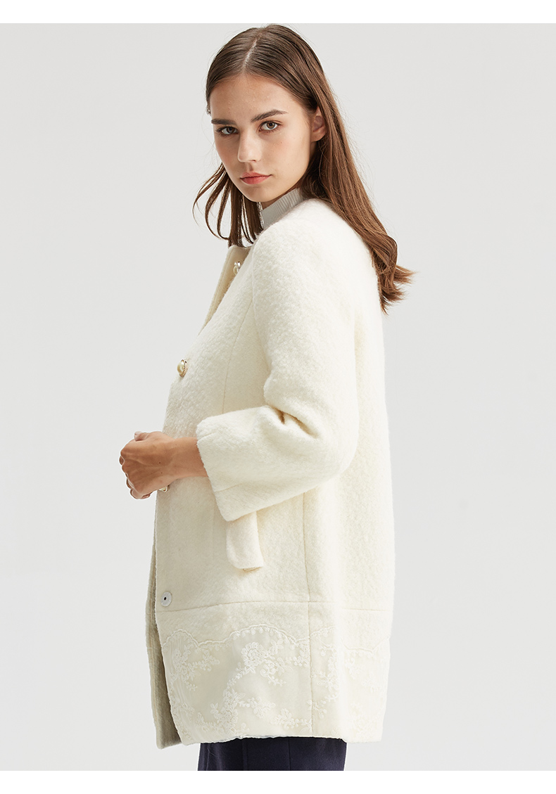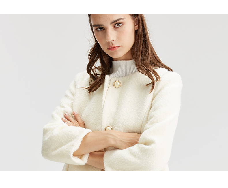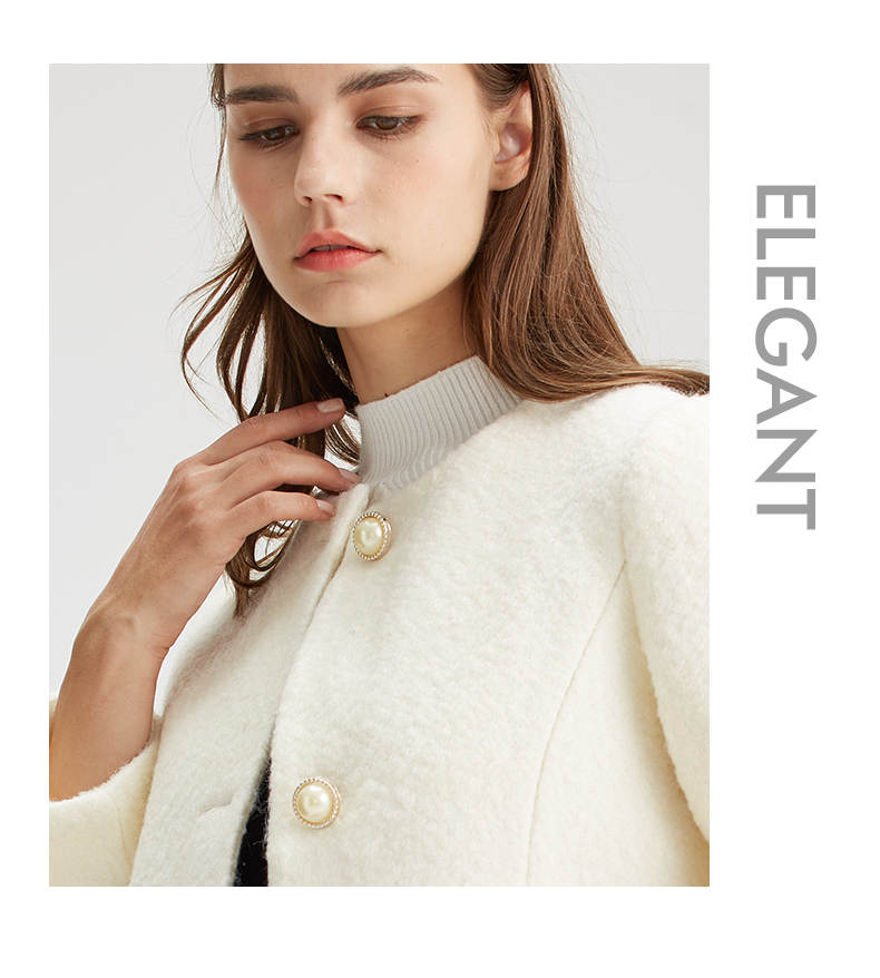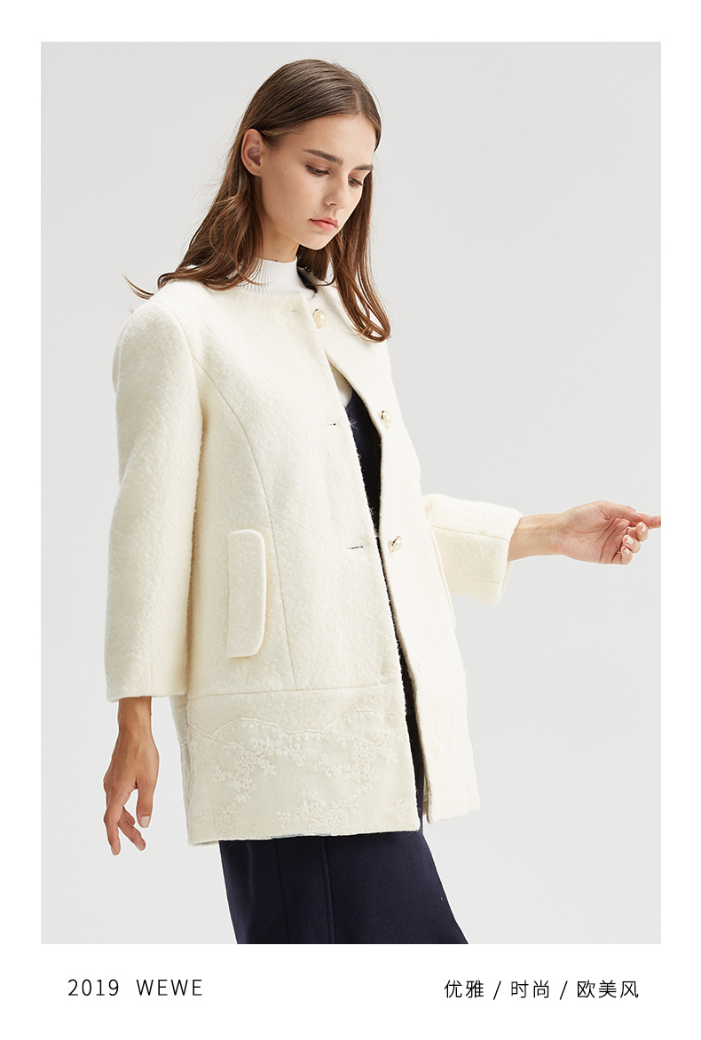 WEWE唯唯冬季新款白色毛呢双面羊绒外套显瘦韩版呢子大衣女中长款