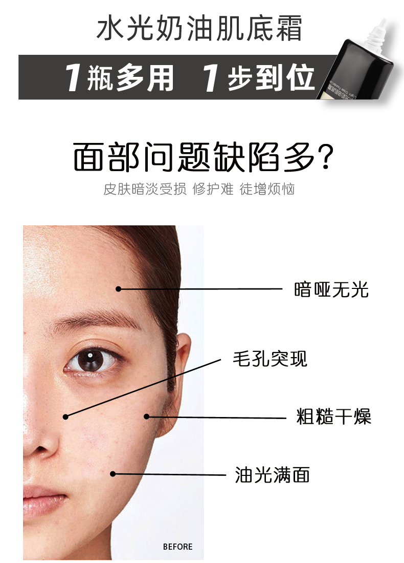 植木森水光奶油肌底霜抗糖养肤粉底懒人霜素颜霜隔离合一补水人气