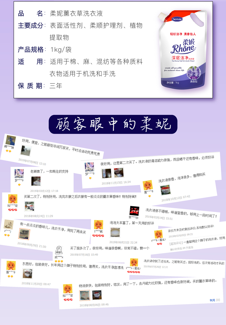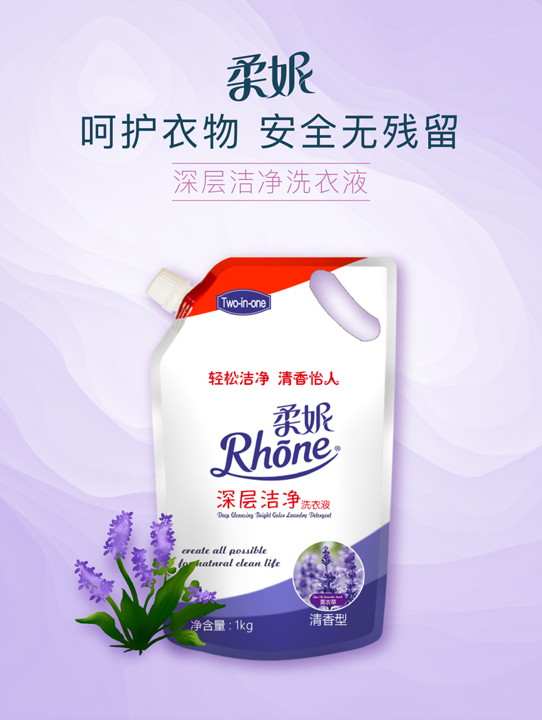 【速度抢!!】柔妮薰衣草香洗衣液,轻松洁净,清香怡人,有效去污除菌,温和不刺激,手洗不伤手机洗不伤衣,让生活更洁净,居家必备。【赠运费险】