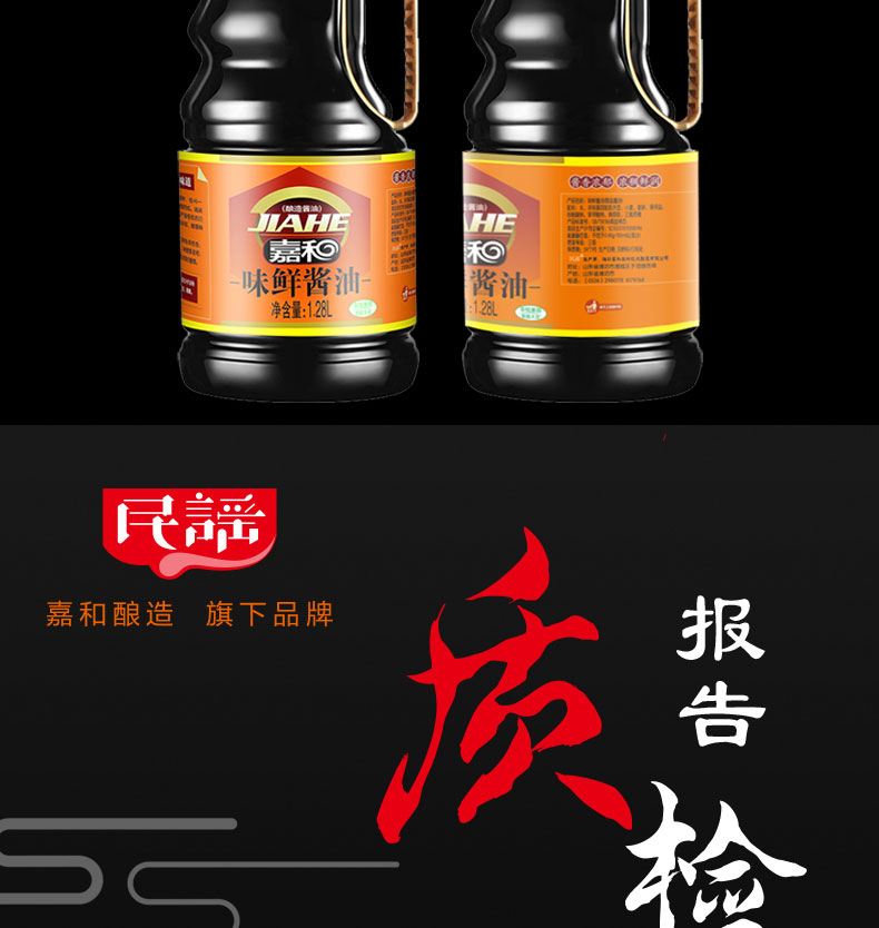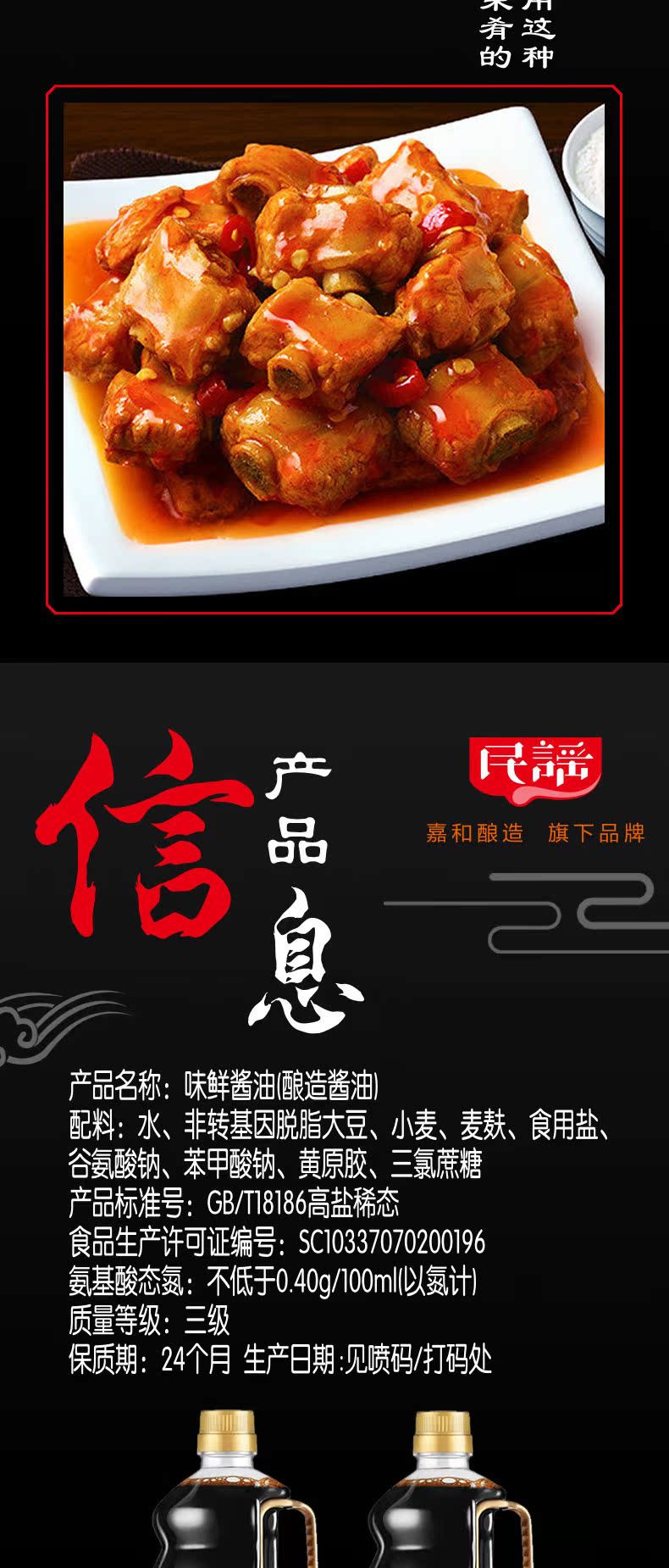 民谣嘉和酿造味鲜酱油1.28L*2瓶红烧有机无糖家用厨房凉拌炒菜