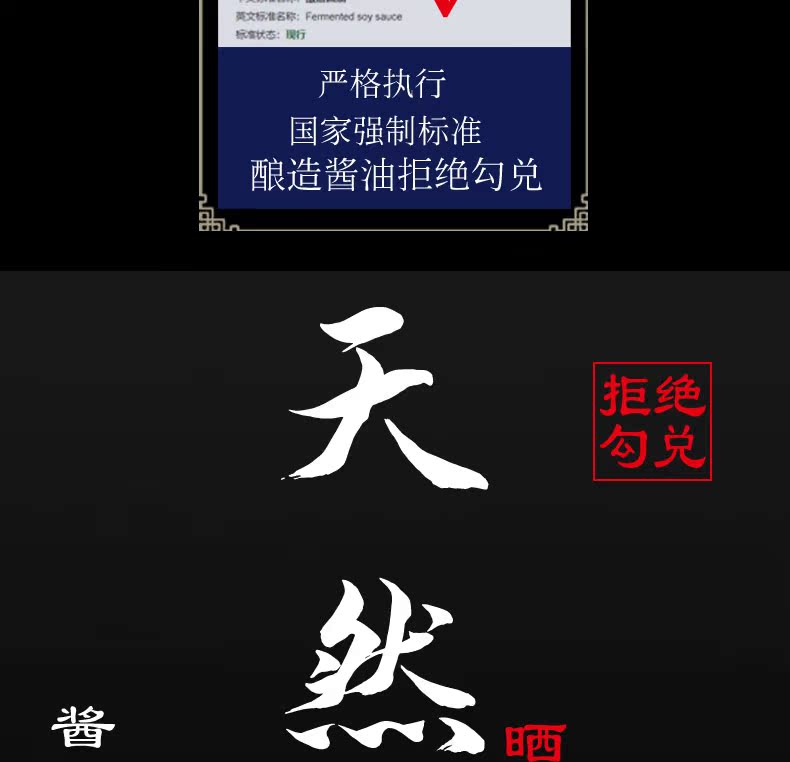 天然发酵精制而成,色泽莹润,自然发酵,口感鲜美,烧蘸两用,不勾兑,不稀释,不调和,简单食材做出美味。