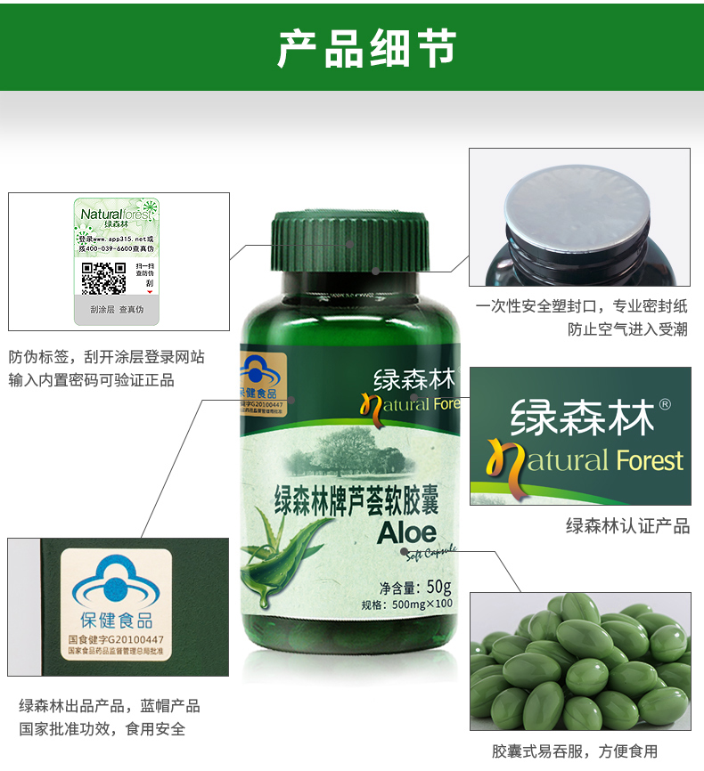 【绿森林保健品旗舰店】蓝帽子认证产品,精选库拉索芦荟,植物萃取凝练,国家认证的保健食品,让您食用更加放心,绿森林值得信赖【赠运费险】