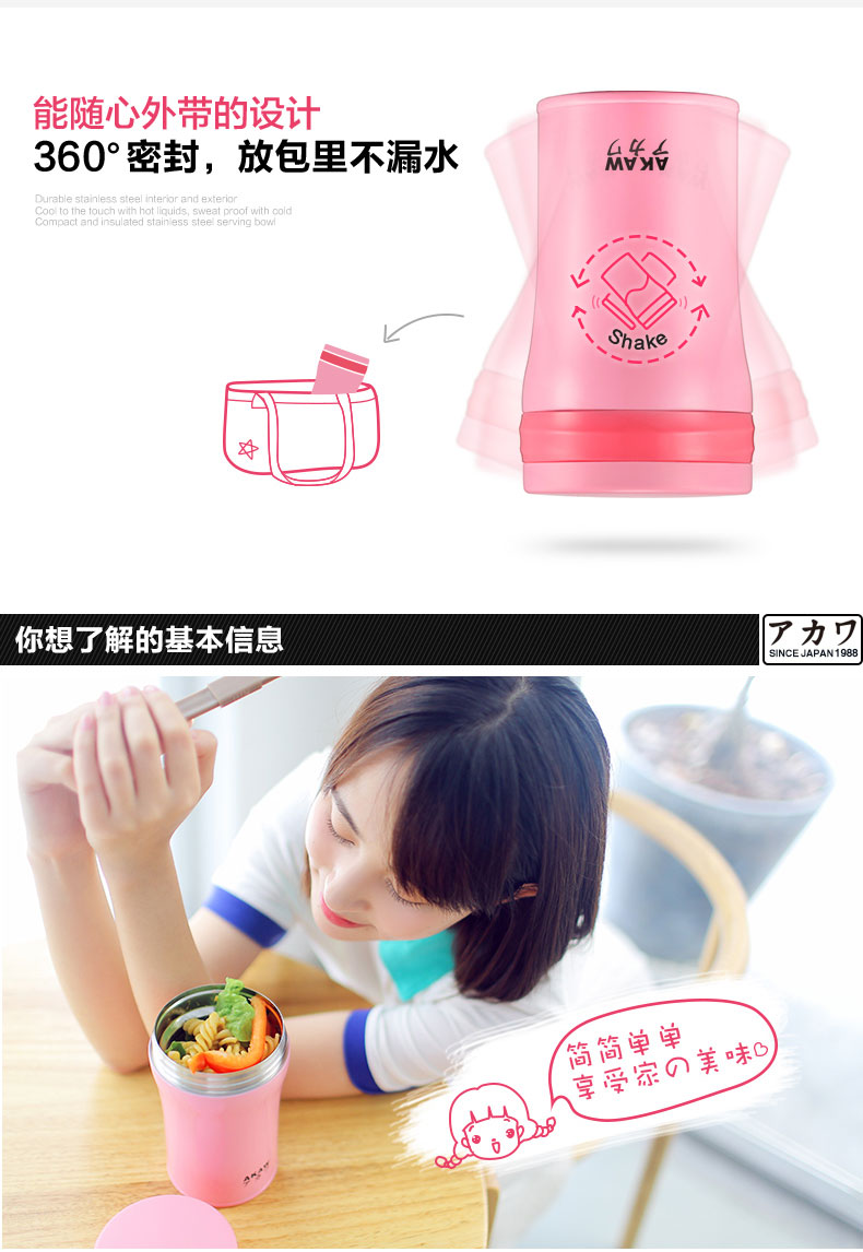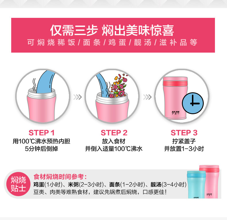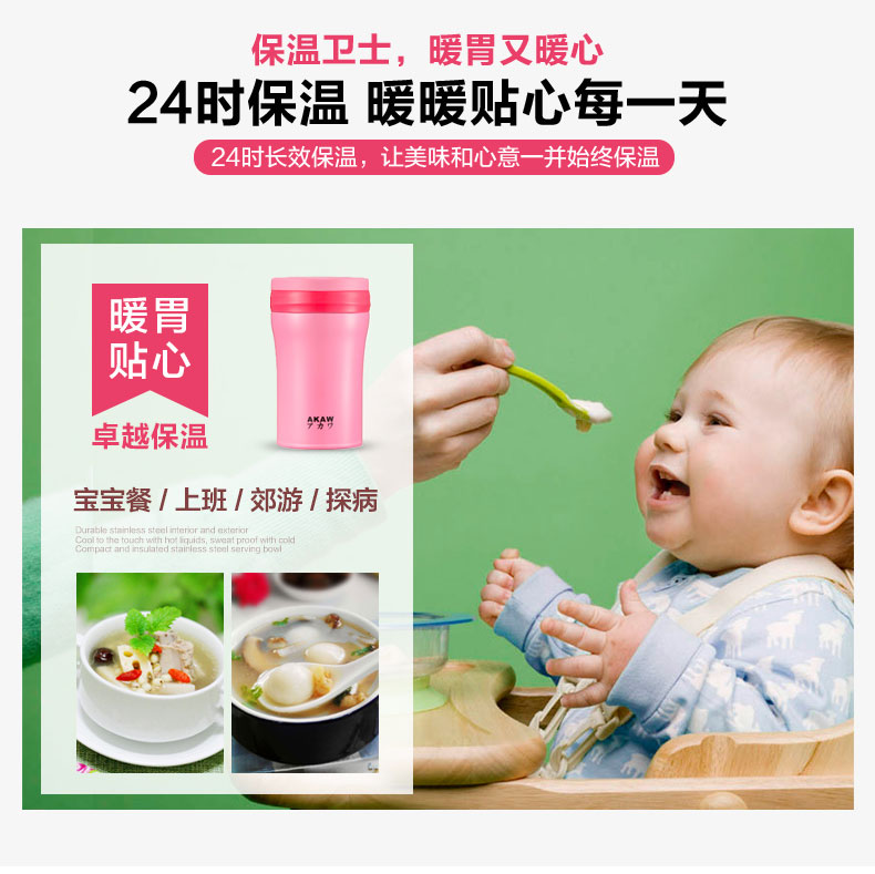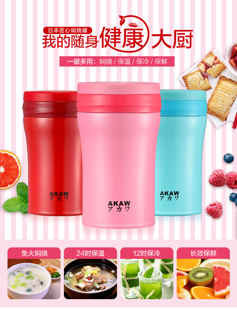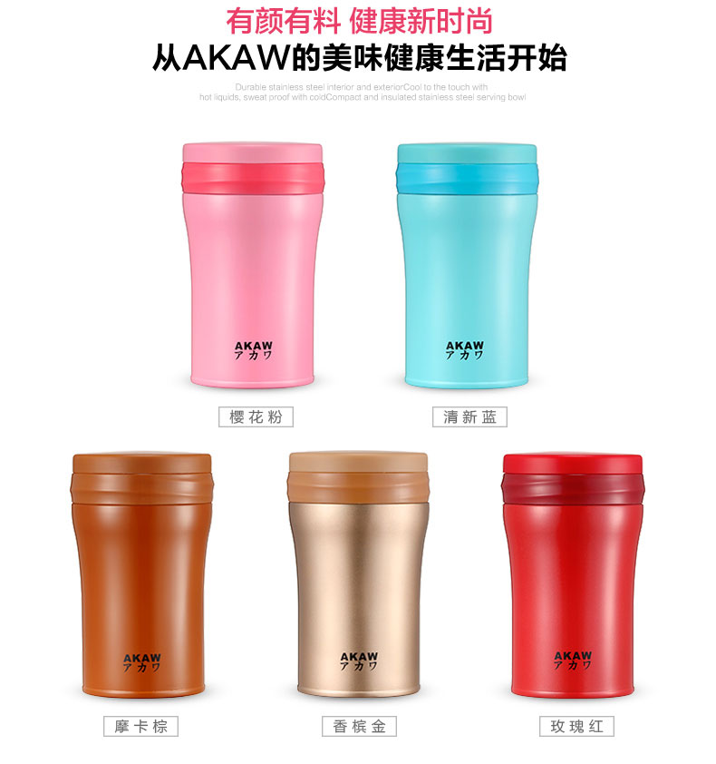 AKAW不锈钢学生儿童保温壶,方便携带,节省时间,焖出美味,只需4步,健康生活,轻食主义,生活好帮手!