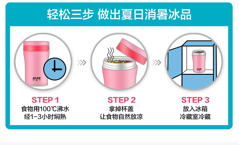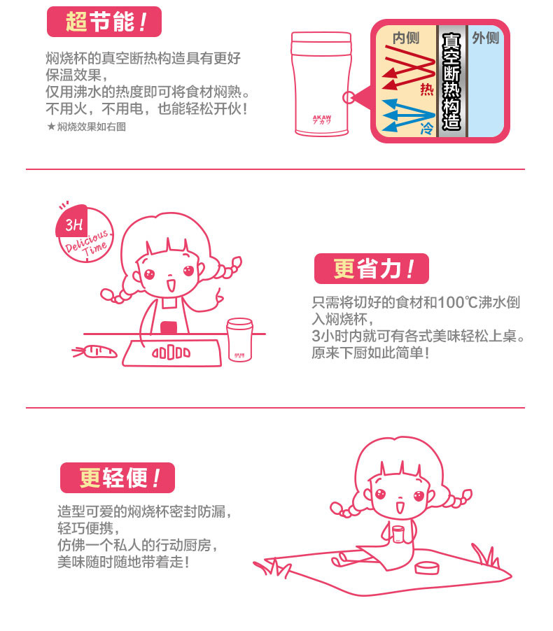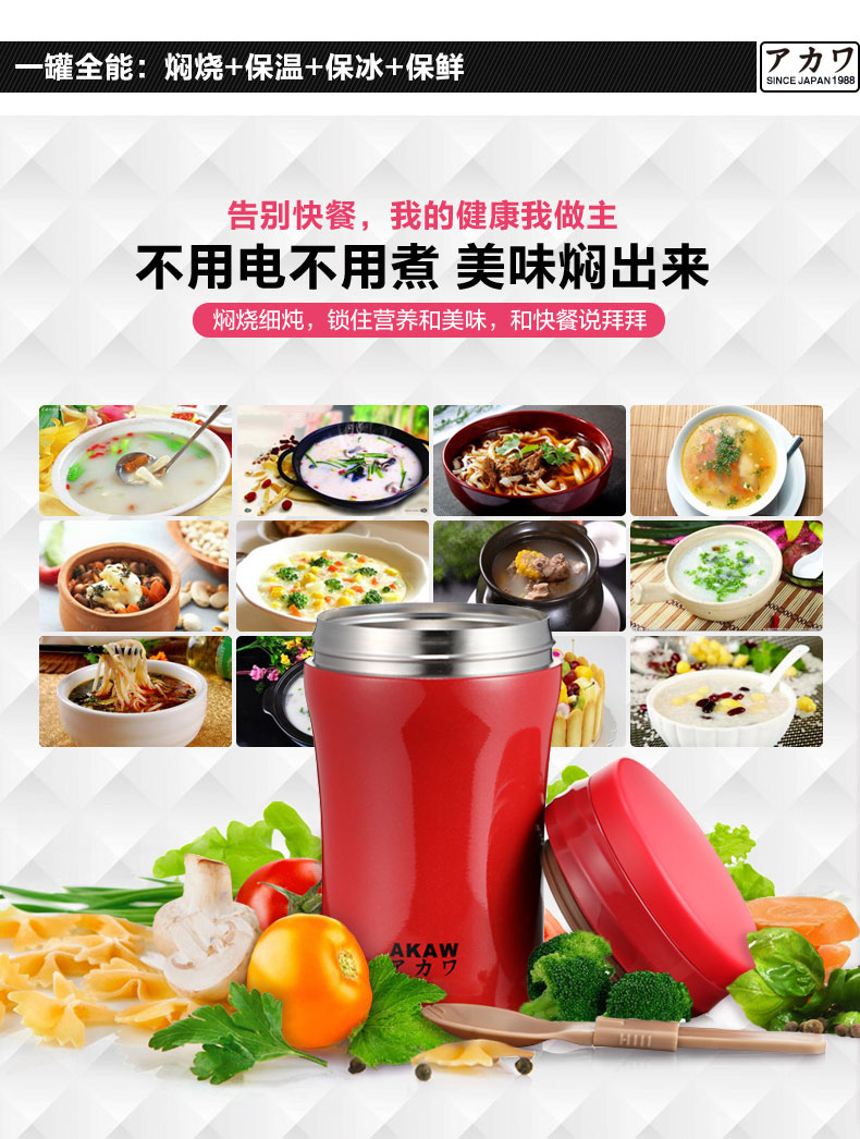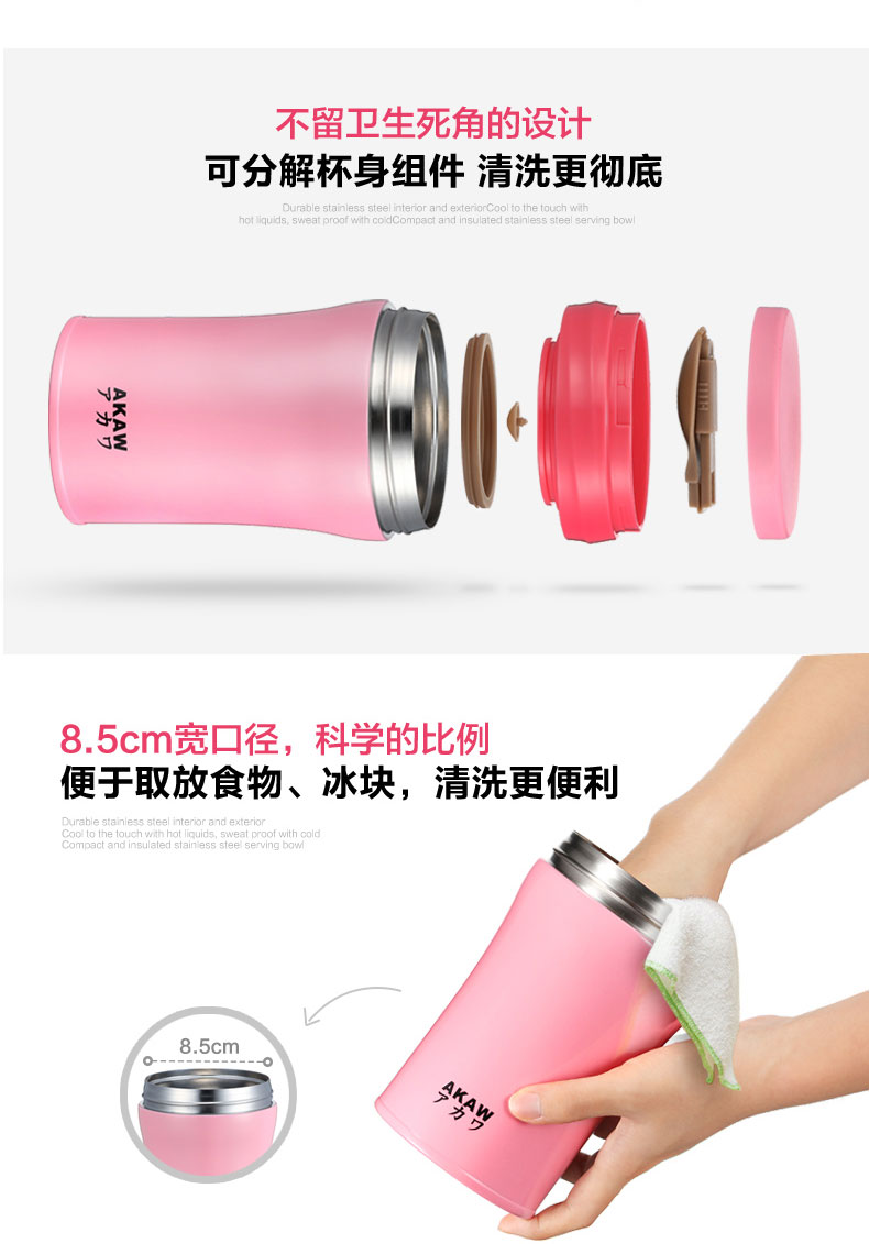 AKAW不锈钢学生儿童保温壶,方便携带,节省时间,焖出美味,只需4步,健康生活,轻食主义,生活好帮手!