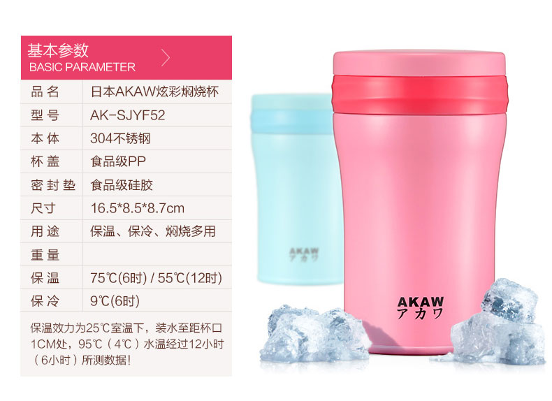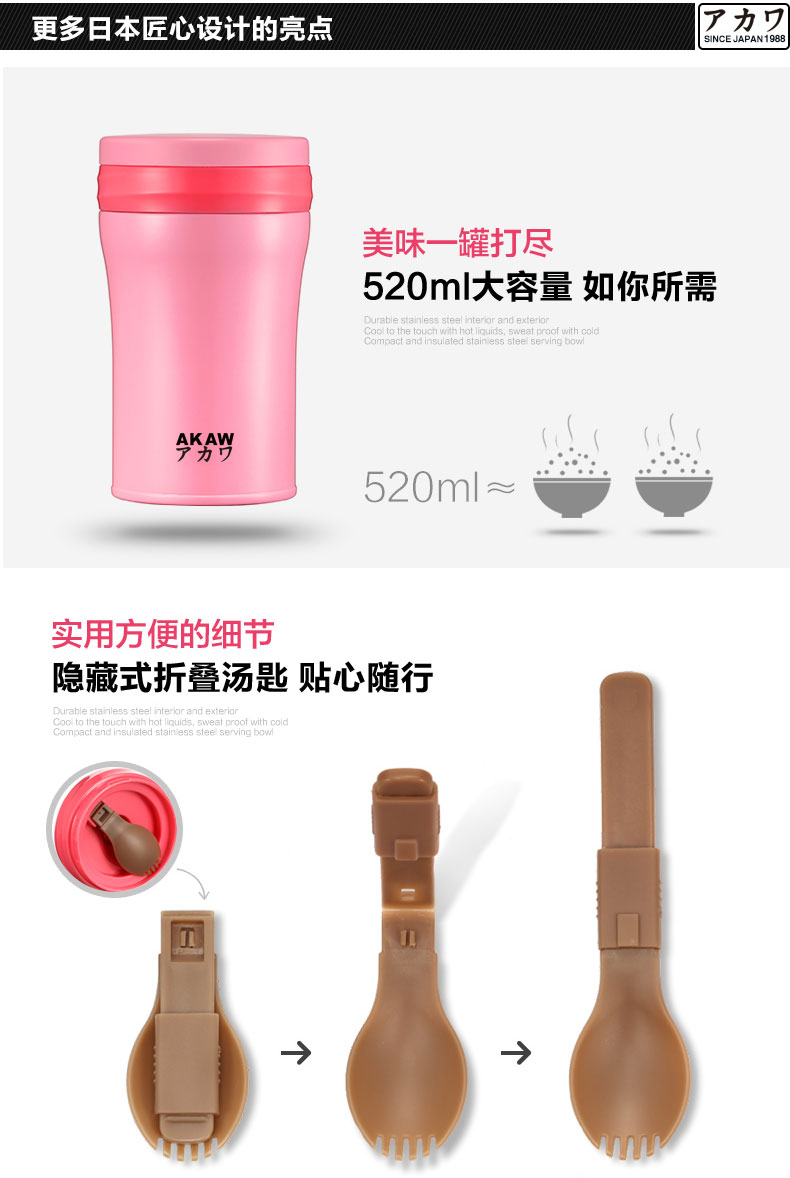 日本正品AKAW不锈钢学生儿童保温壶焖烧罐保温饭盒 真空保温杯女