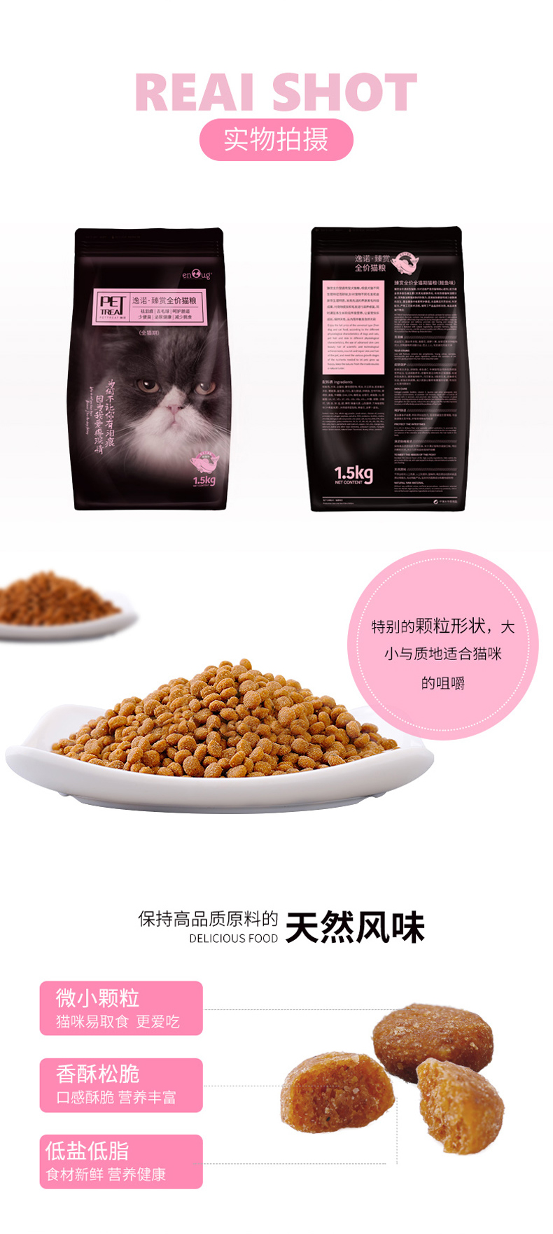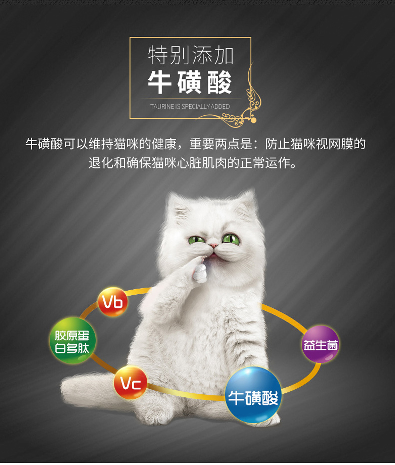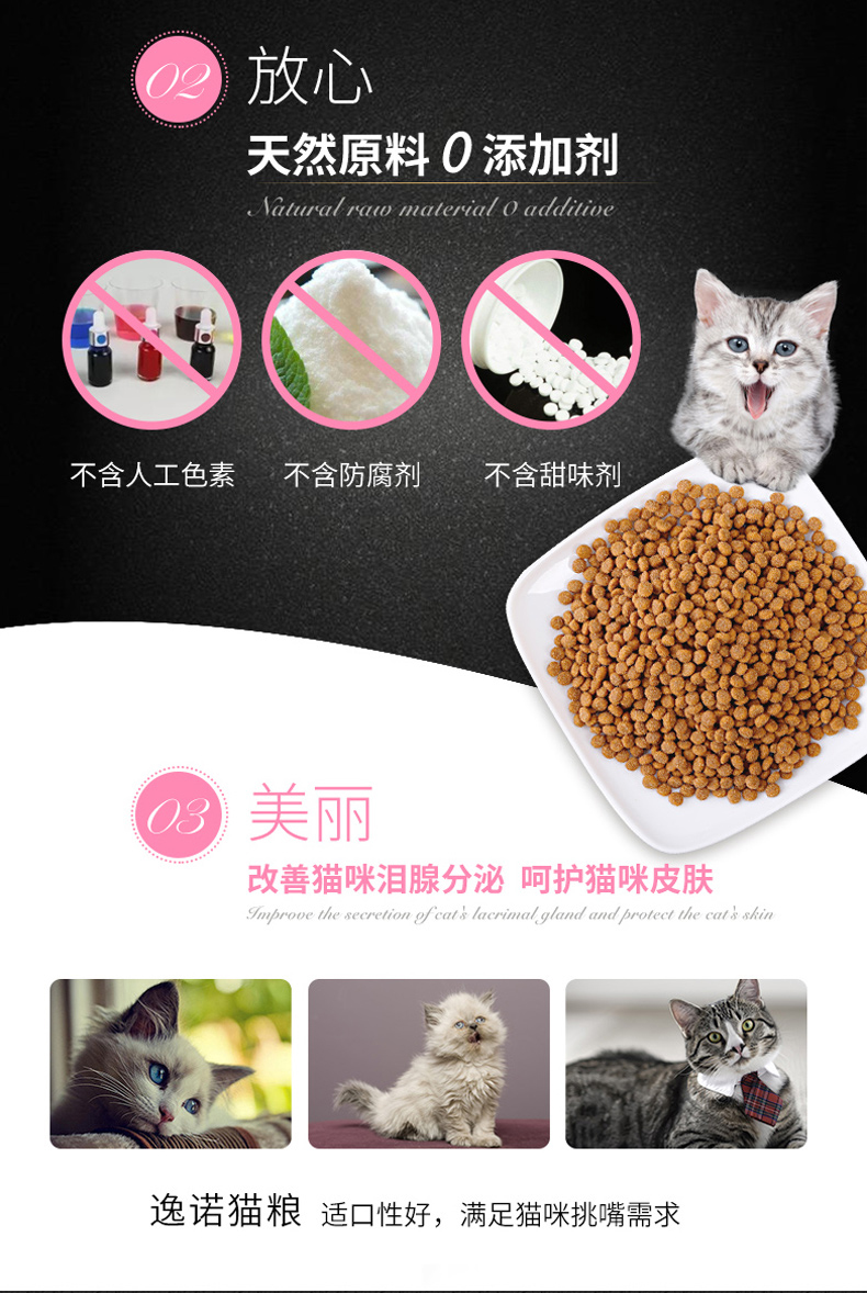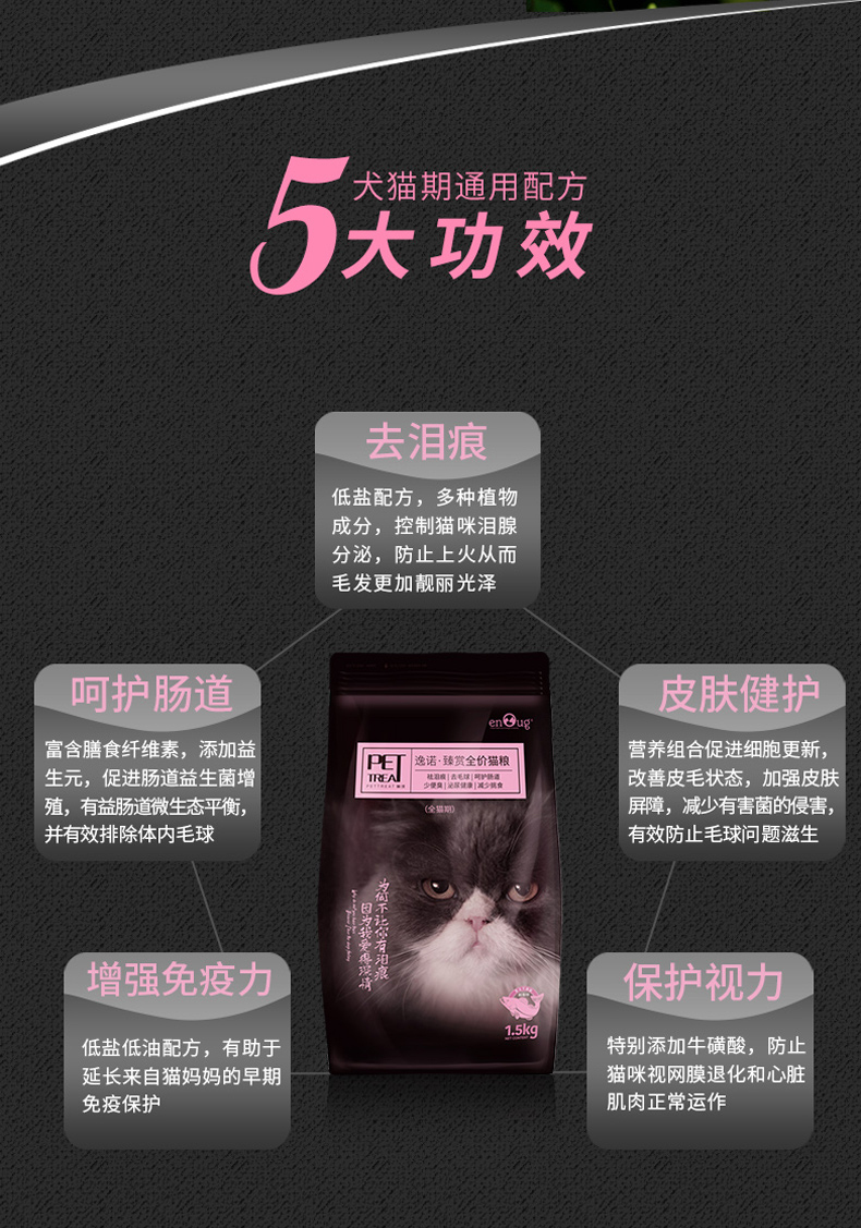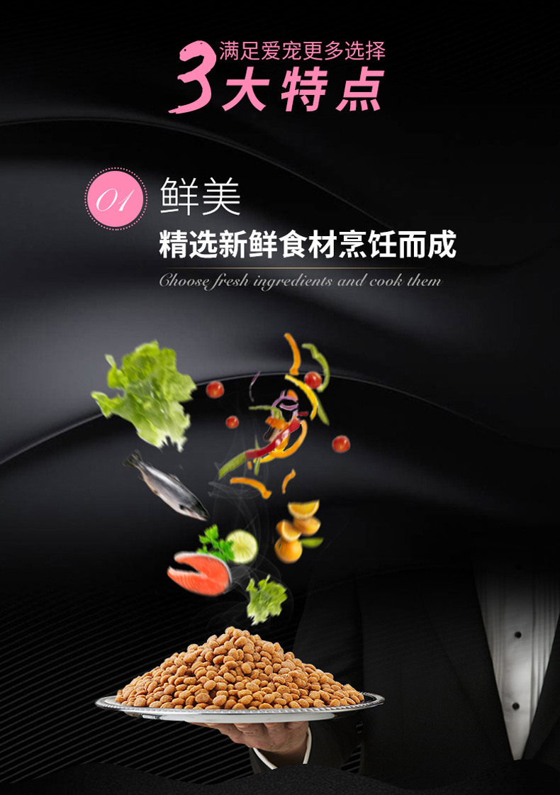 天然无谷低敏配方,添加卵磷脂发毛美毛,强化免疫,强壮身体,多重质检,多年营养研究结晶。