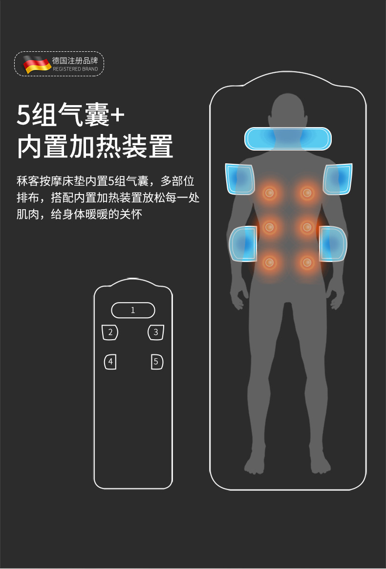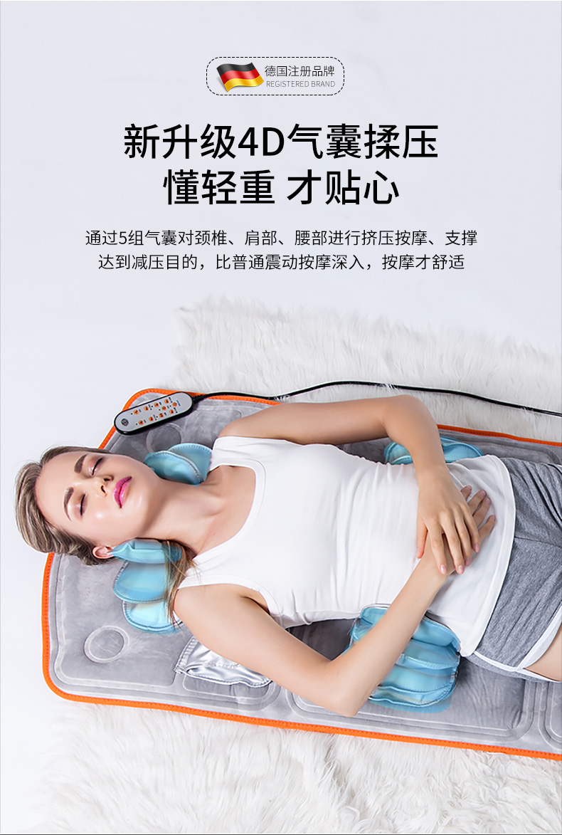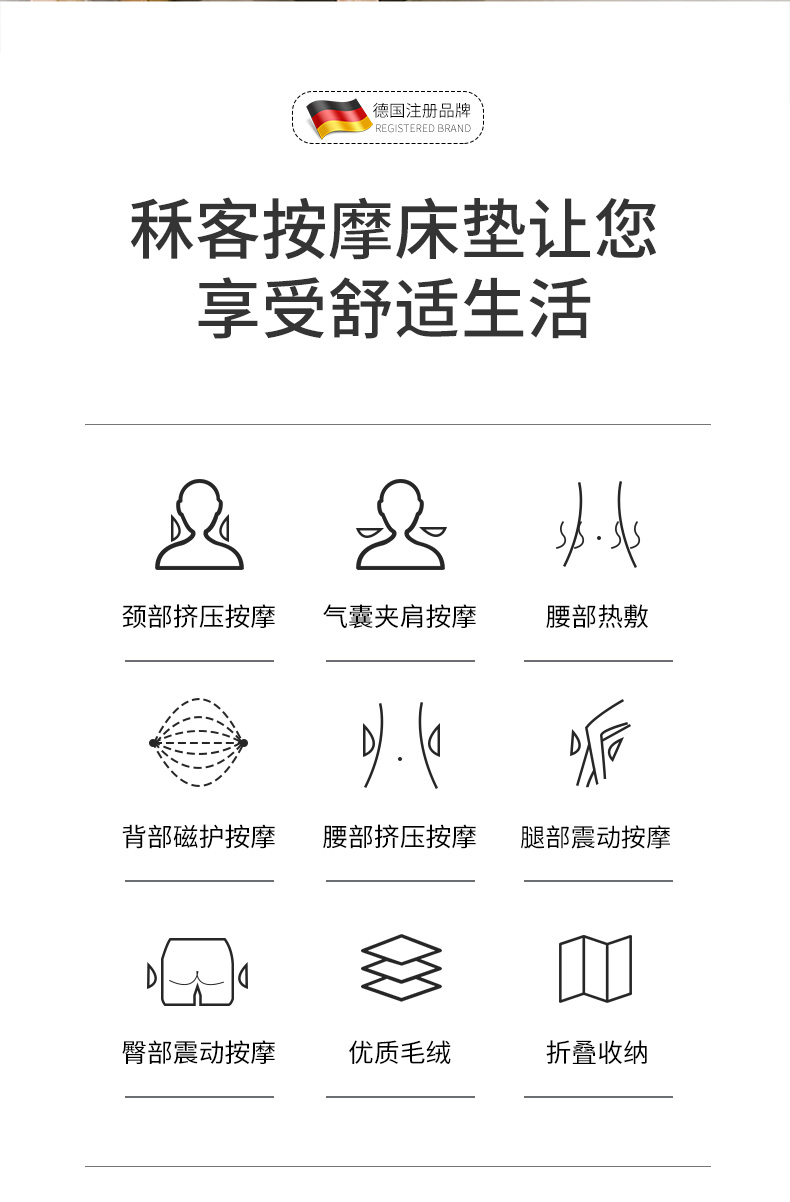 秝客德国注册品牌,新升级按摩床垫,气囊、震动和磁护3合一,新升级4D气囊揉压,可以对颈椎、肩部和腰部等重要部位舒适按摩,内置加热系统,暖心热敷【赠运费险】