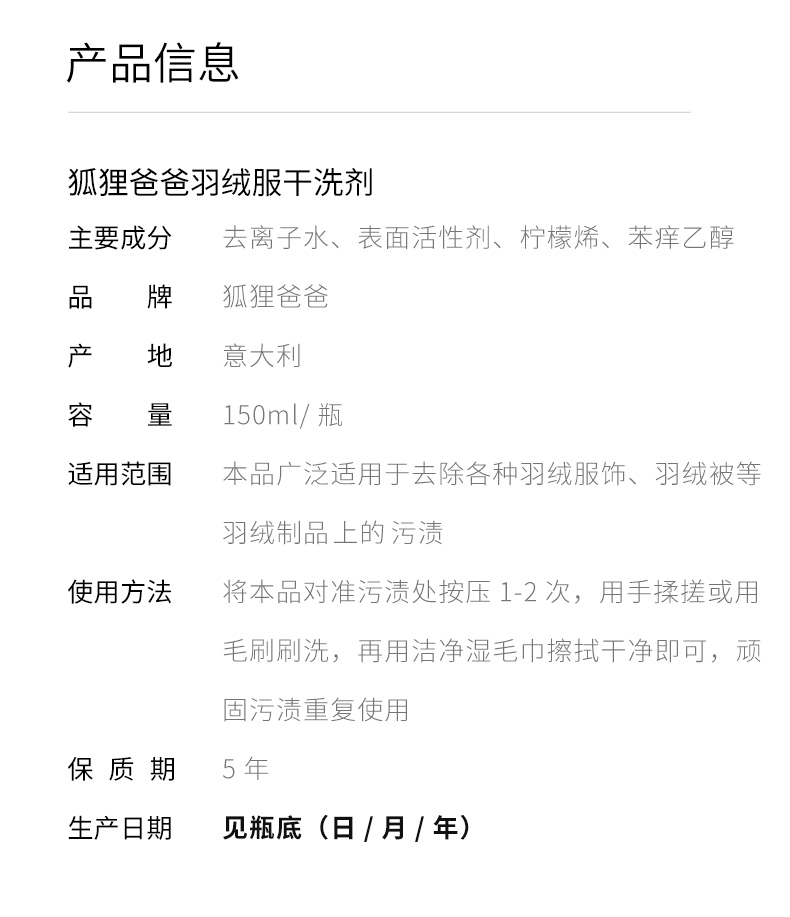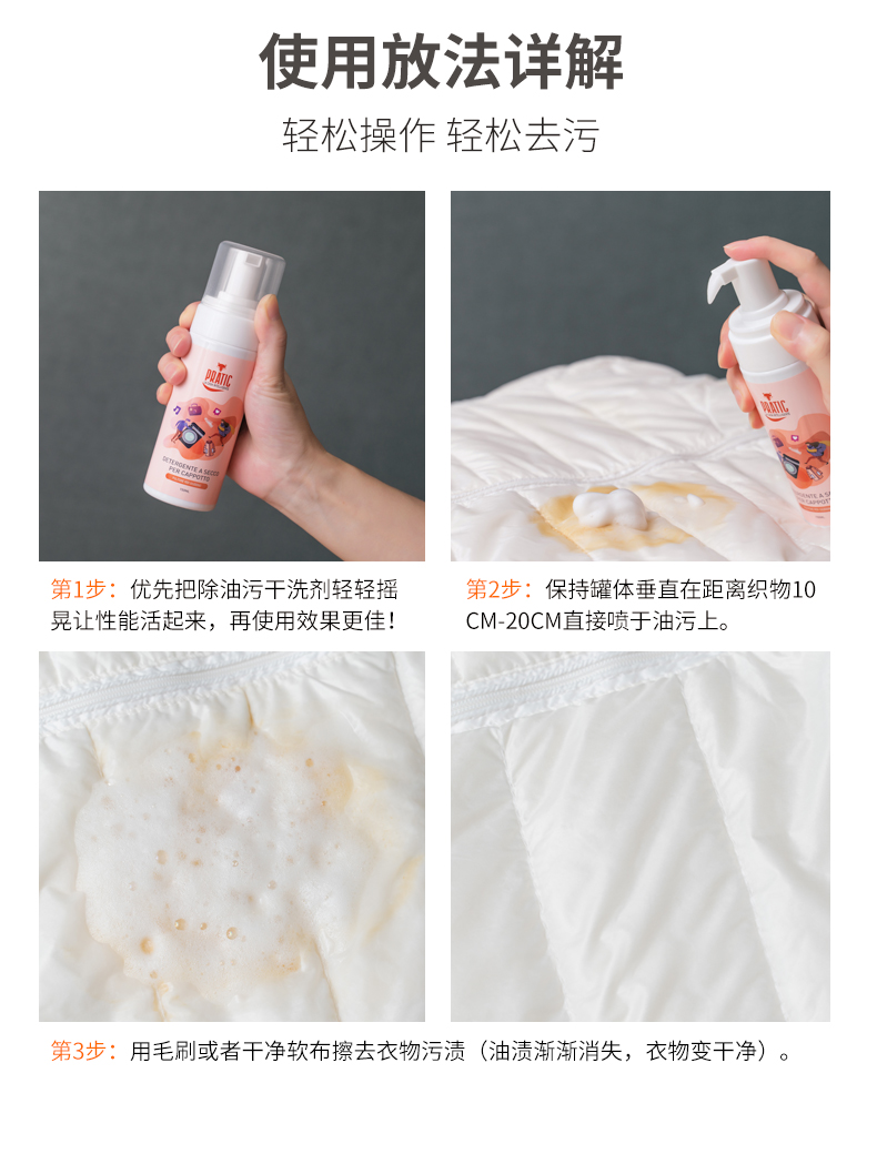 狐狸爸爸羽绒服干洗剂,衣物免水洗强力清洁去污渍油渍神器清洗喷雾,免水洗去污不留痕。