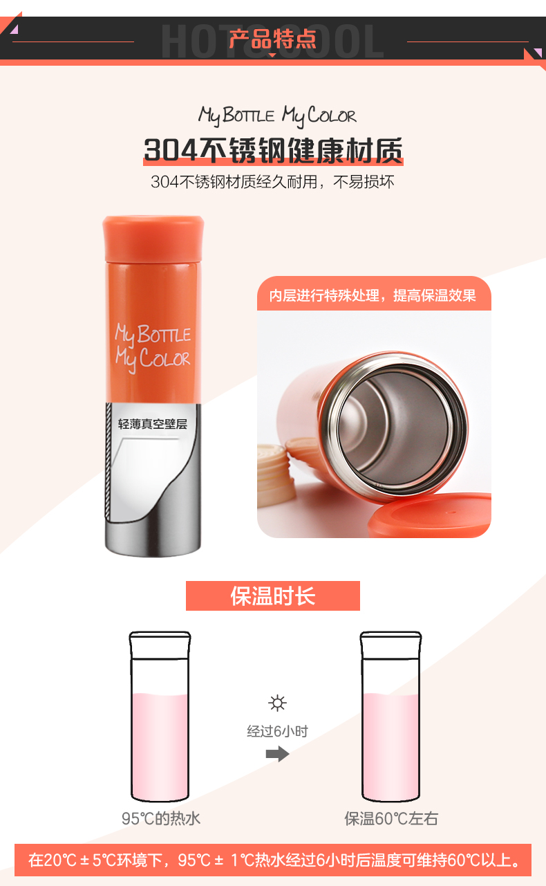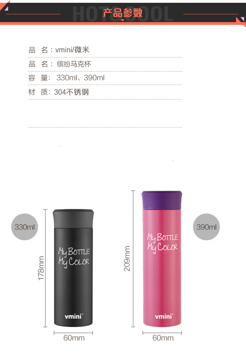 vmini学生保温杯男女可爱便携杯子不锈钢保温情侣茶水杯