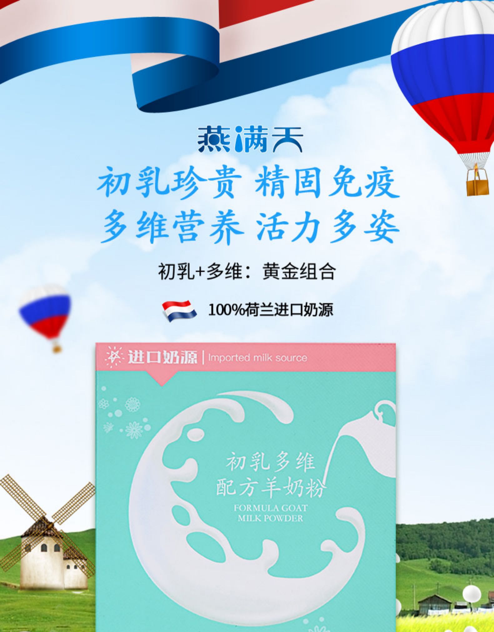 燕满天初乳羊奶粉成人女士孕妇无蔗糖中老年高钙学生荷兰进口奶源