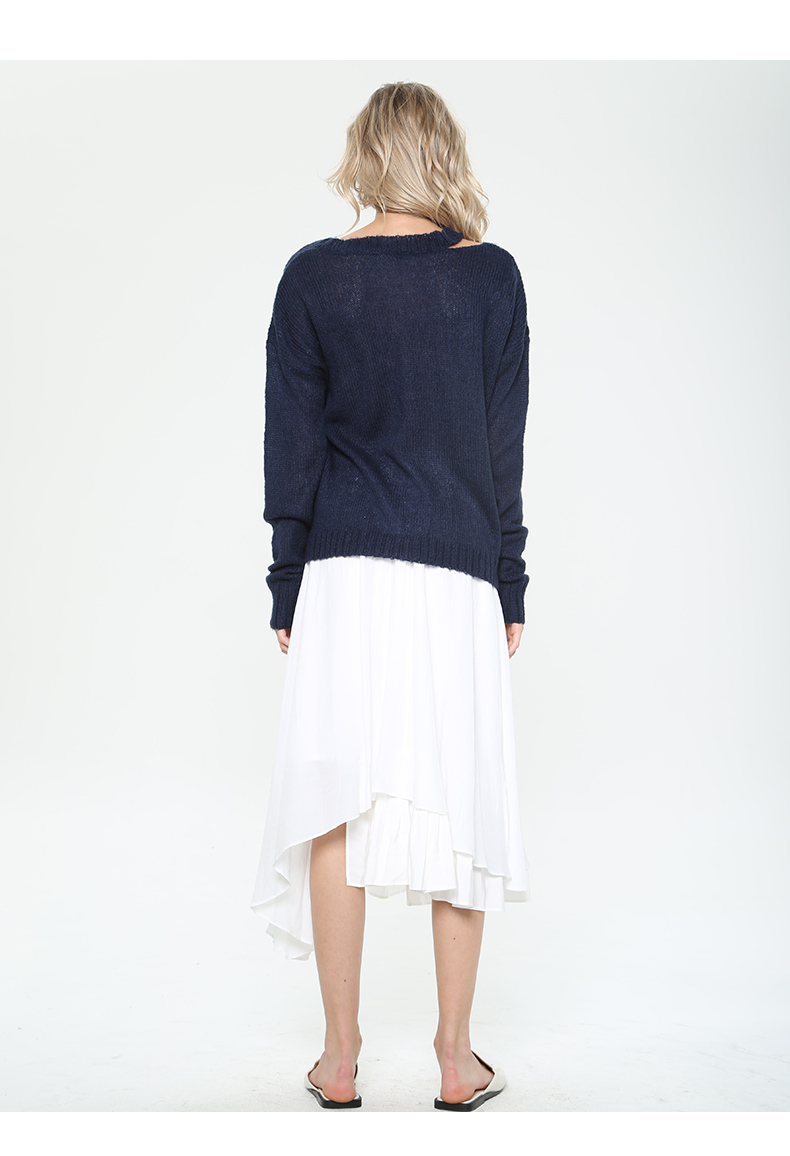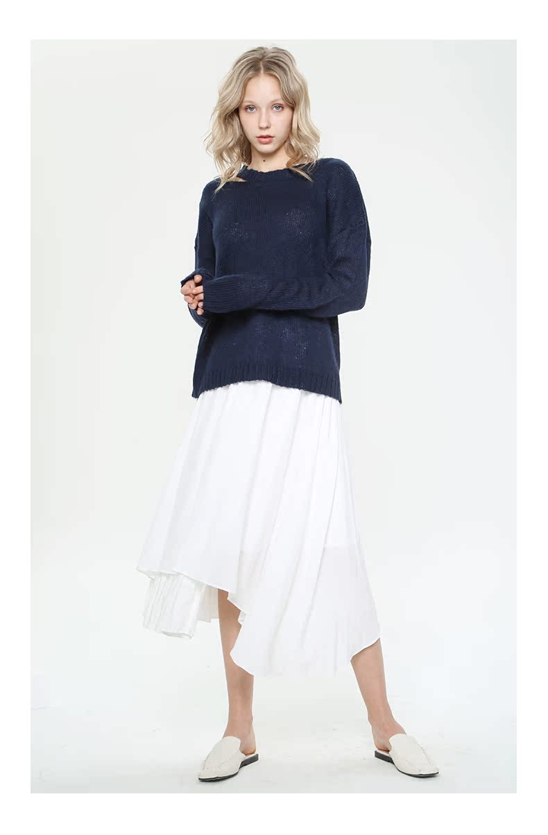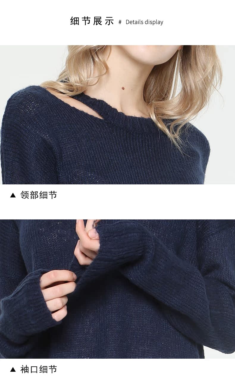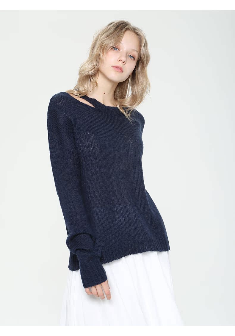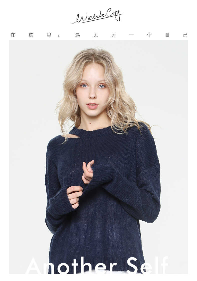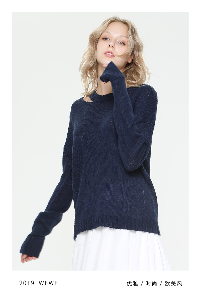 WEWE唯唯毛衣女宽松外穿显瘦秋冬新款镂空防晒打低薄款针织套头衫