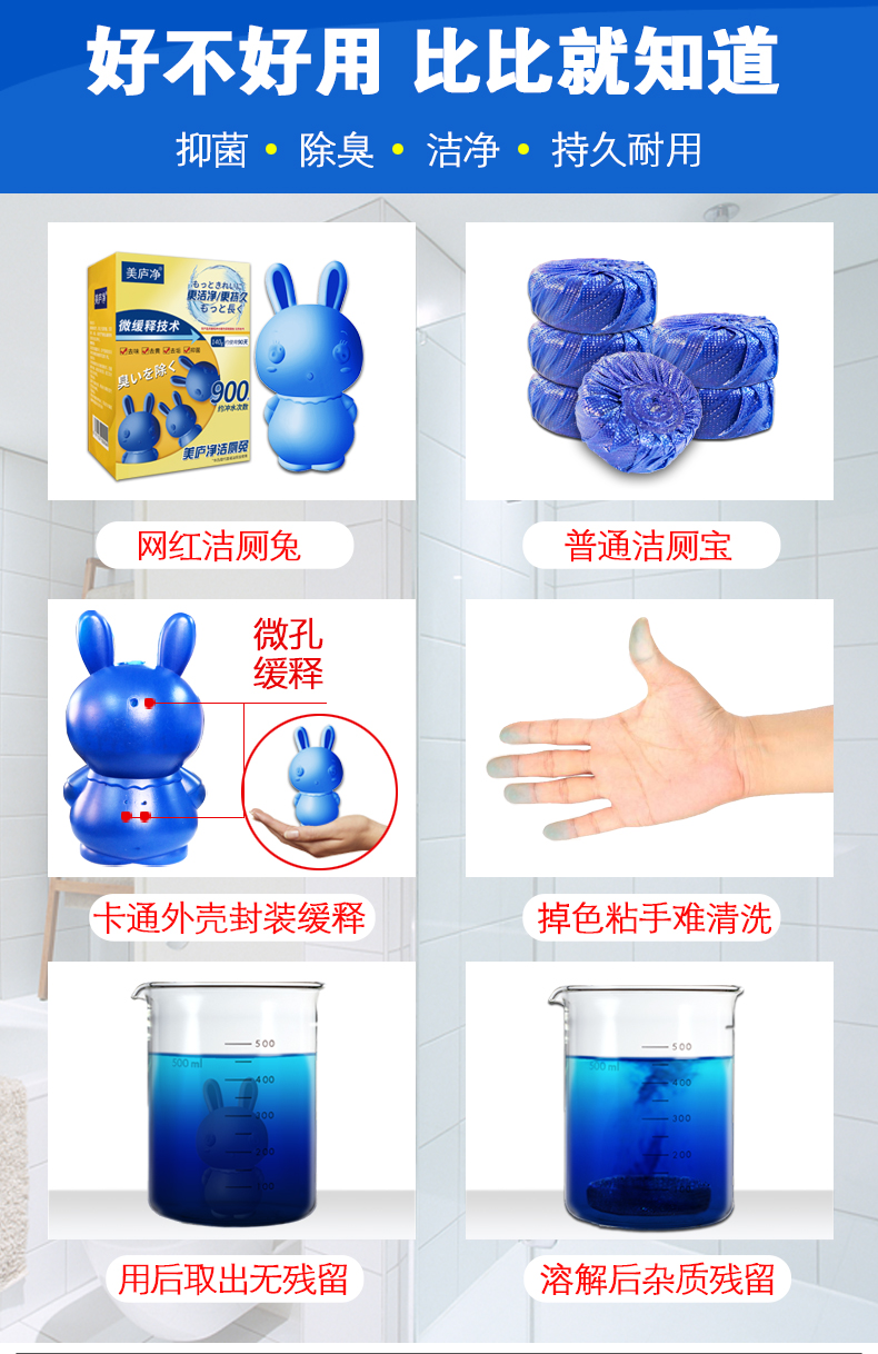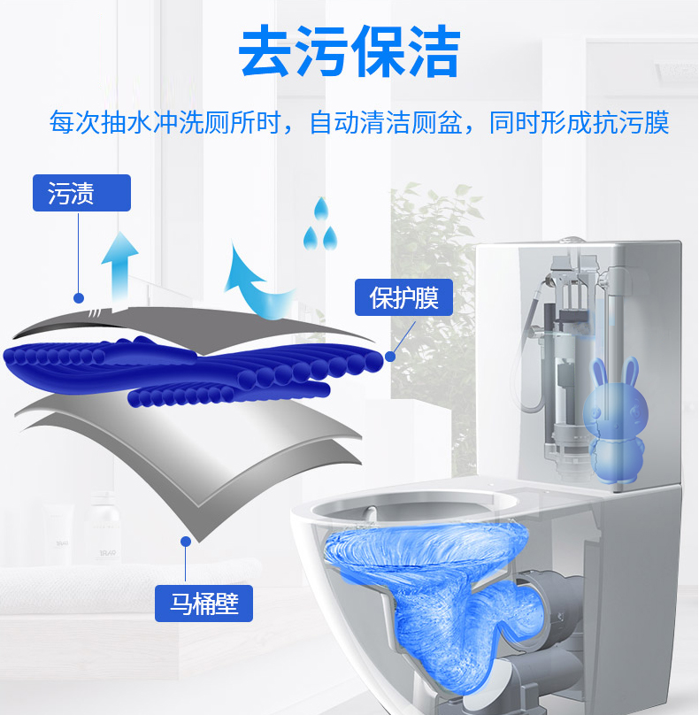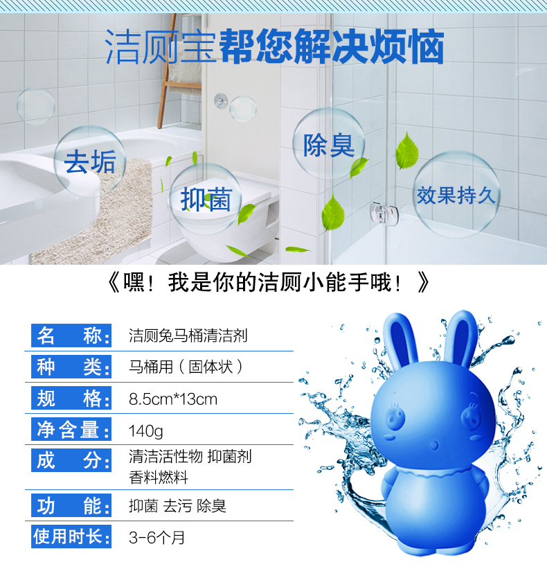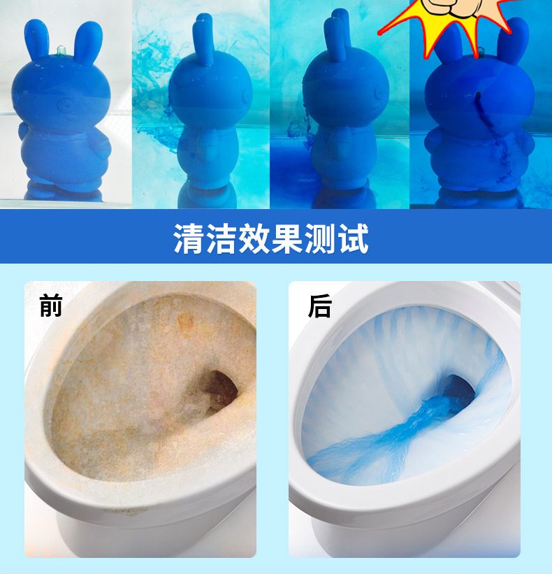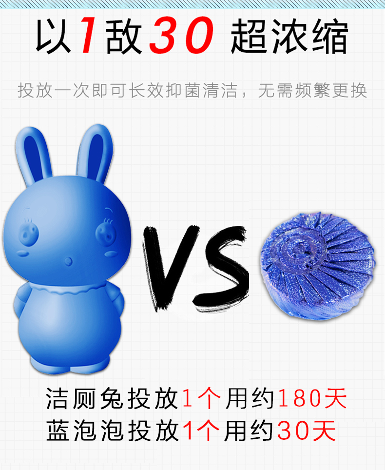 【1瓶持续使用半年】1瓶装洁厕兔=80粒老款蓝泡泡,清香除味,不掉色不粘手,去污除垢,釉面形成保护膜,无残留不挂壁,先进的科学浓缩技术,更持久耐用。告别脏马桶,享受如厕新“净”界~
