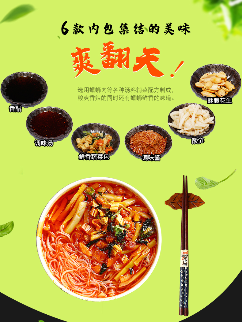 同碗福螺蛳粉超值6包装,精选食材,秘制配料,酸辣鲜爽,Q弹劲道,爽滑入味,健康营养,舌尖上的中国特别推荐美食,独立包装,健康卫生,吃货必撸!