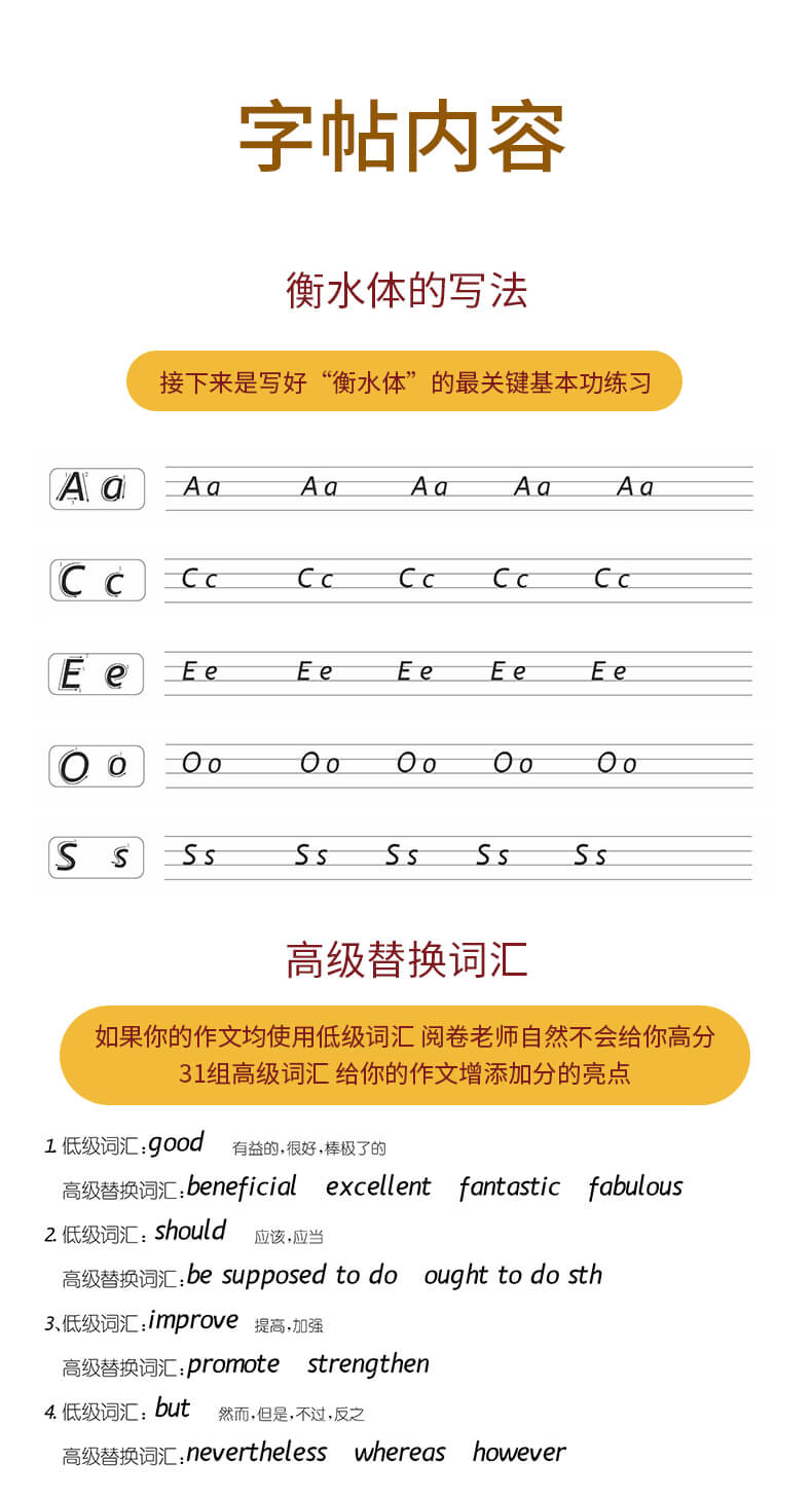 【高中生必备】衡水体英文练字帖,精心编制,透明临摹纸,临摹方便,提高书写水平,练字必备!
