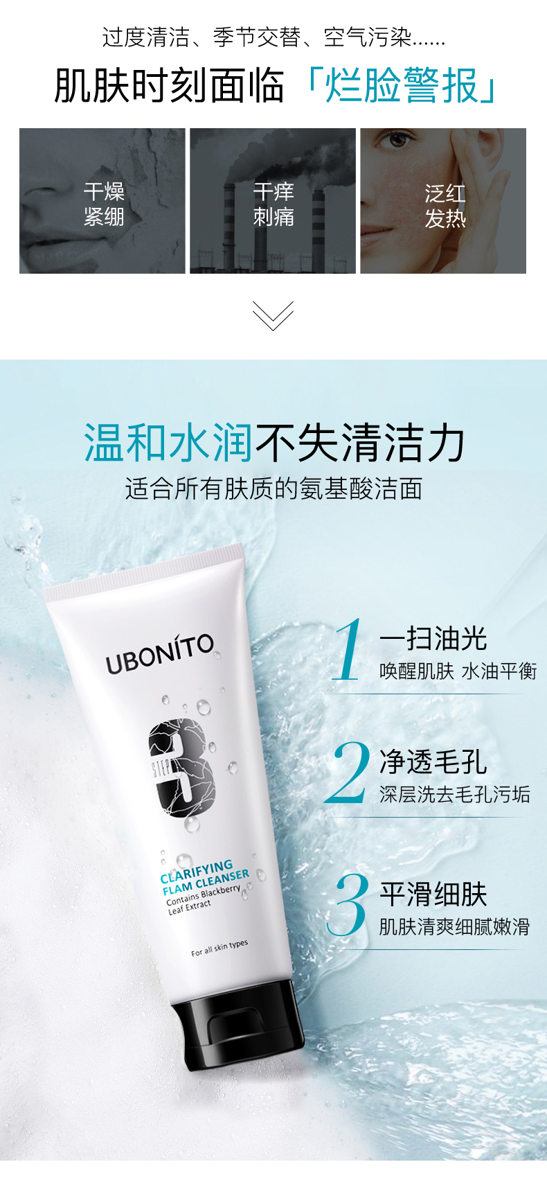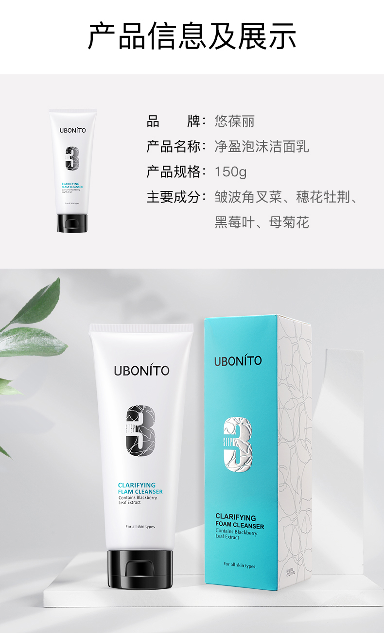 UBONITO/悠葆丽净盈泡沫洁面乳持久温和清洁补水抗痘洗面奶男士女