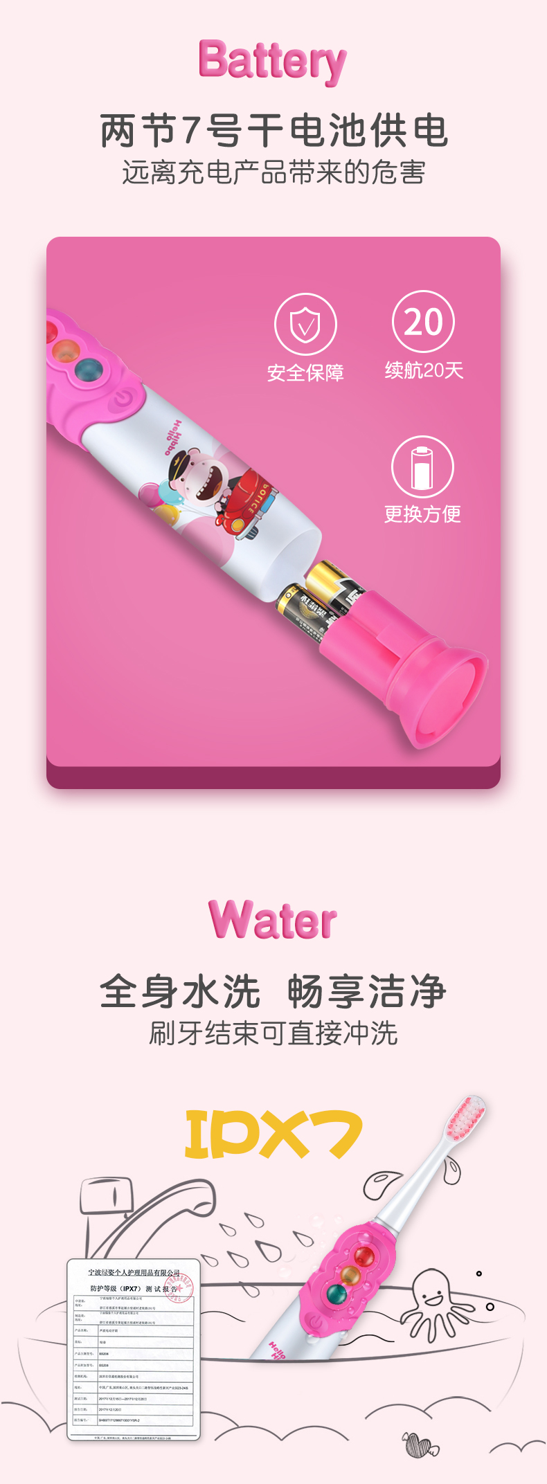 luzi/绿姿儿童电动牙刷声波软毛防水宝宝防蛀牙2-10岁自动牙刷