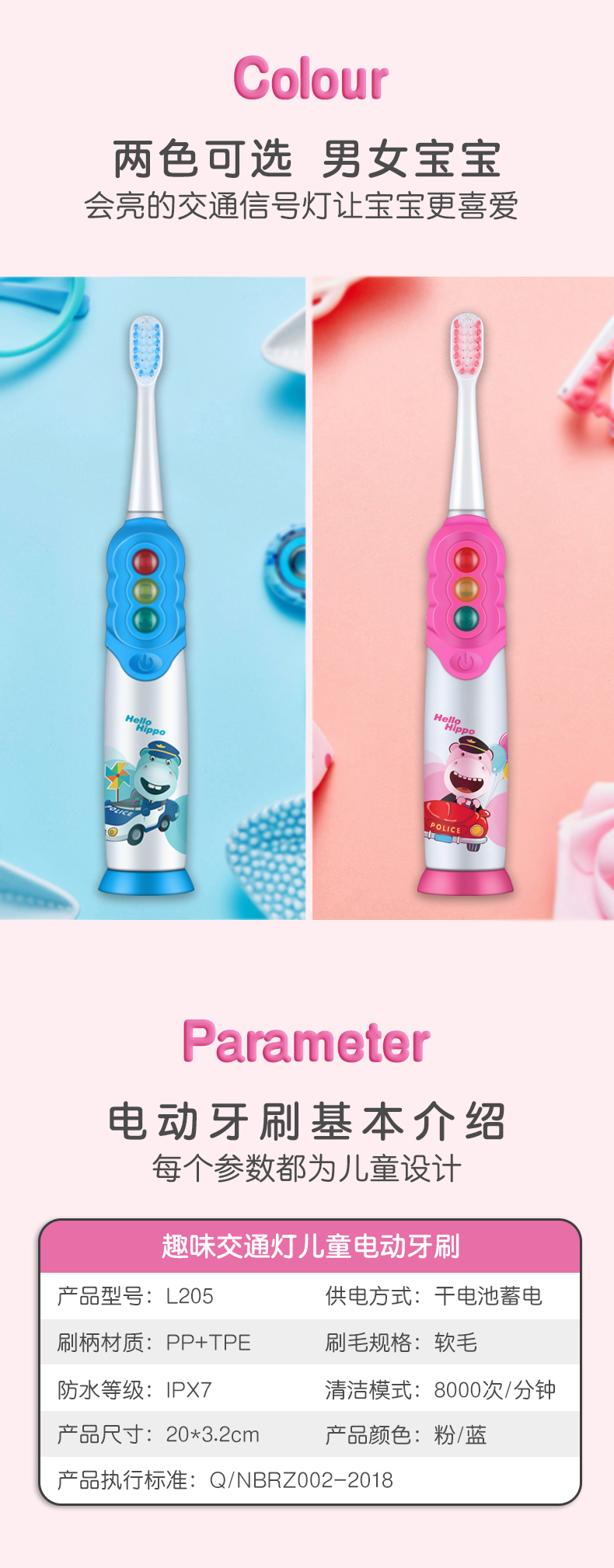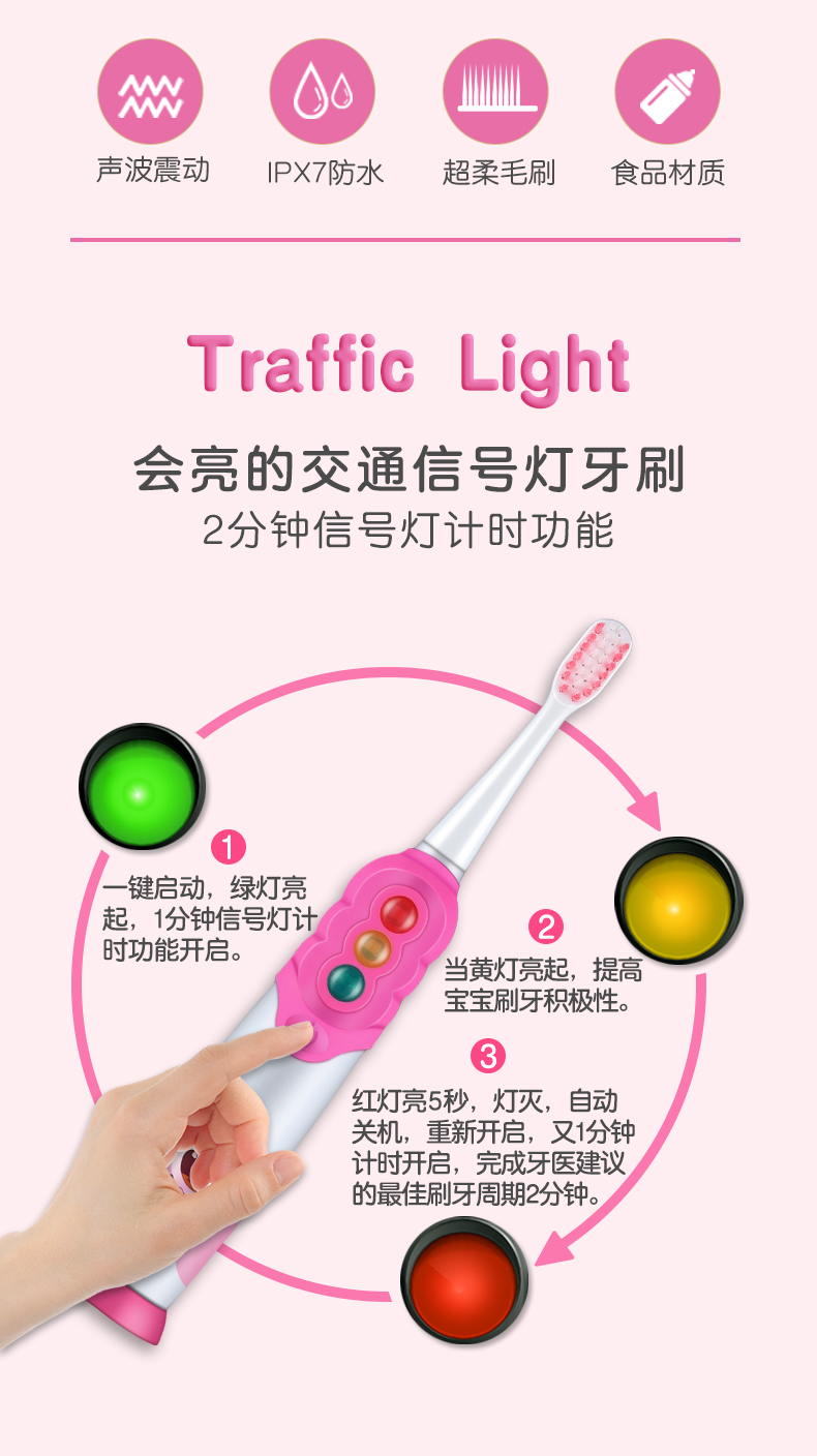 【买1送2!火爆促销!买就送儿童手动牙刷+原装电池】新款智能交通灯电动牙刷,智能2分钟定时,红黄绿等切换牙刷时间,让宝宝刷牙同时可以学习交通知识,杜邦丝超软刷毛,全身可水洗,3-12岁宝宝专用~~