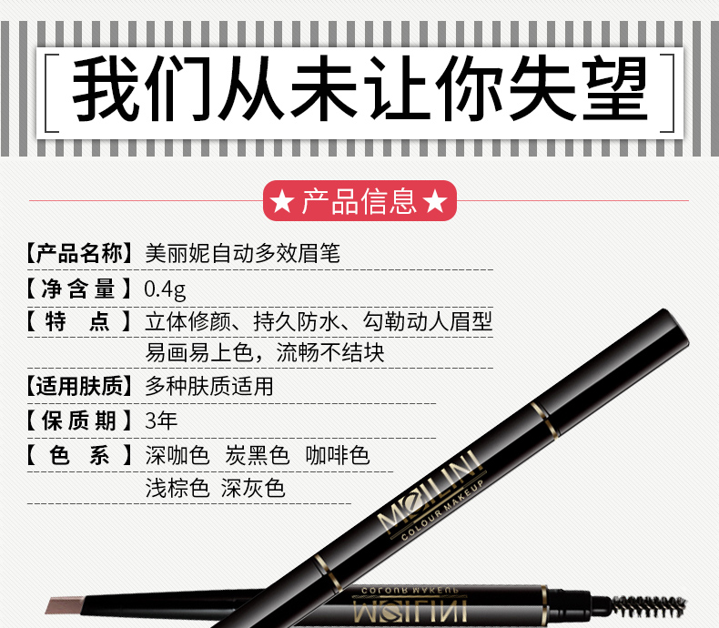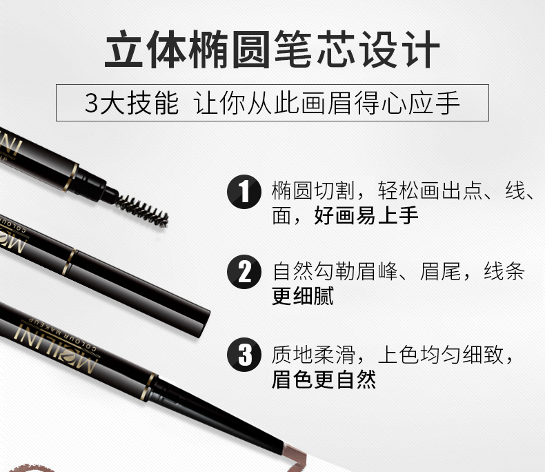 美丽妮新手好画眉笔防水持久不脱色初学者旋转式免削眉笔抖音同款